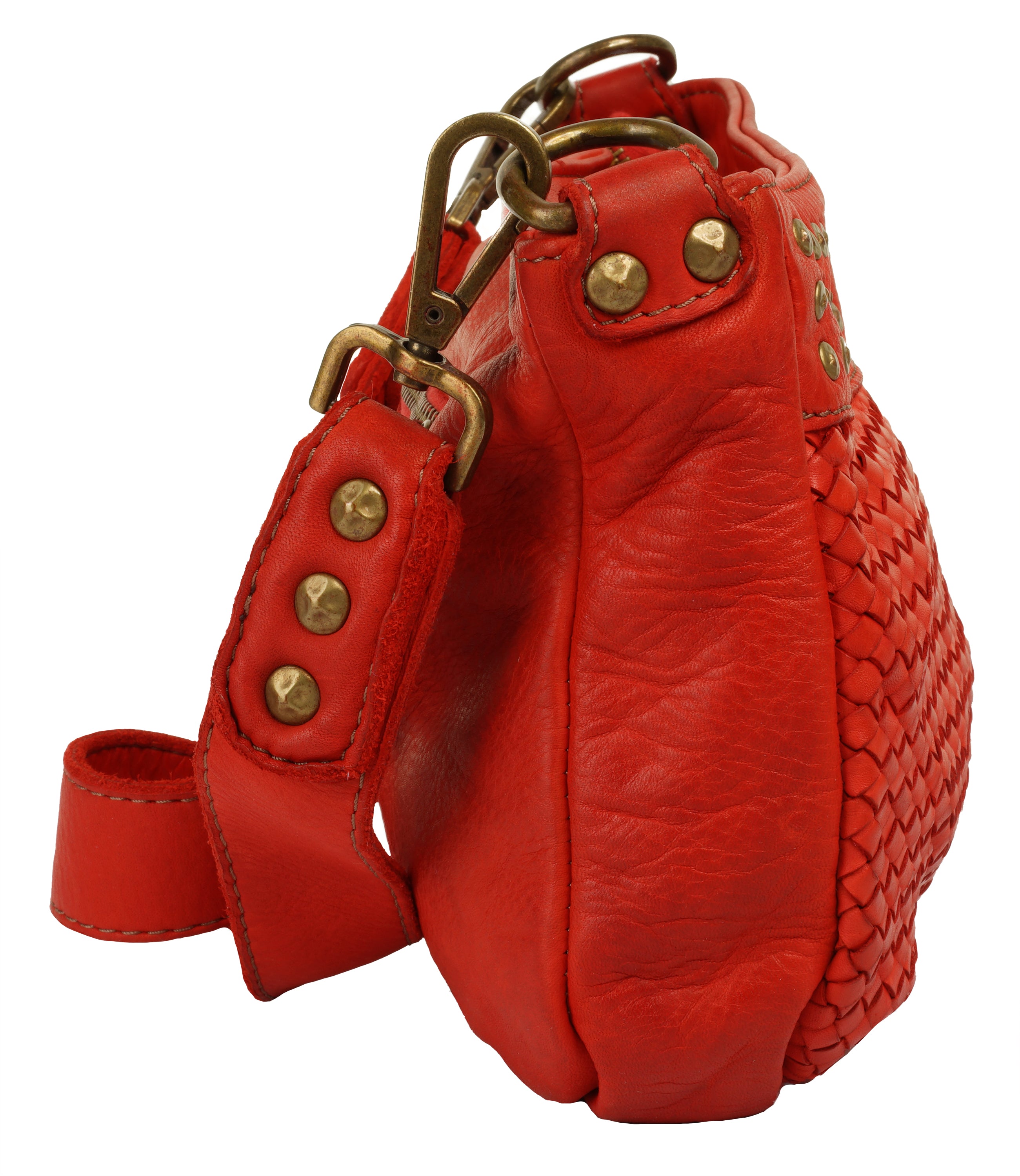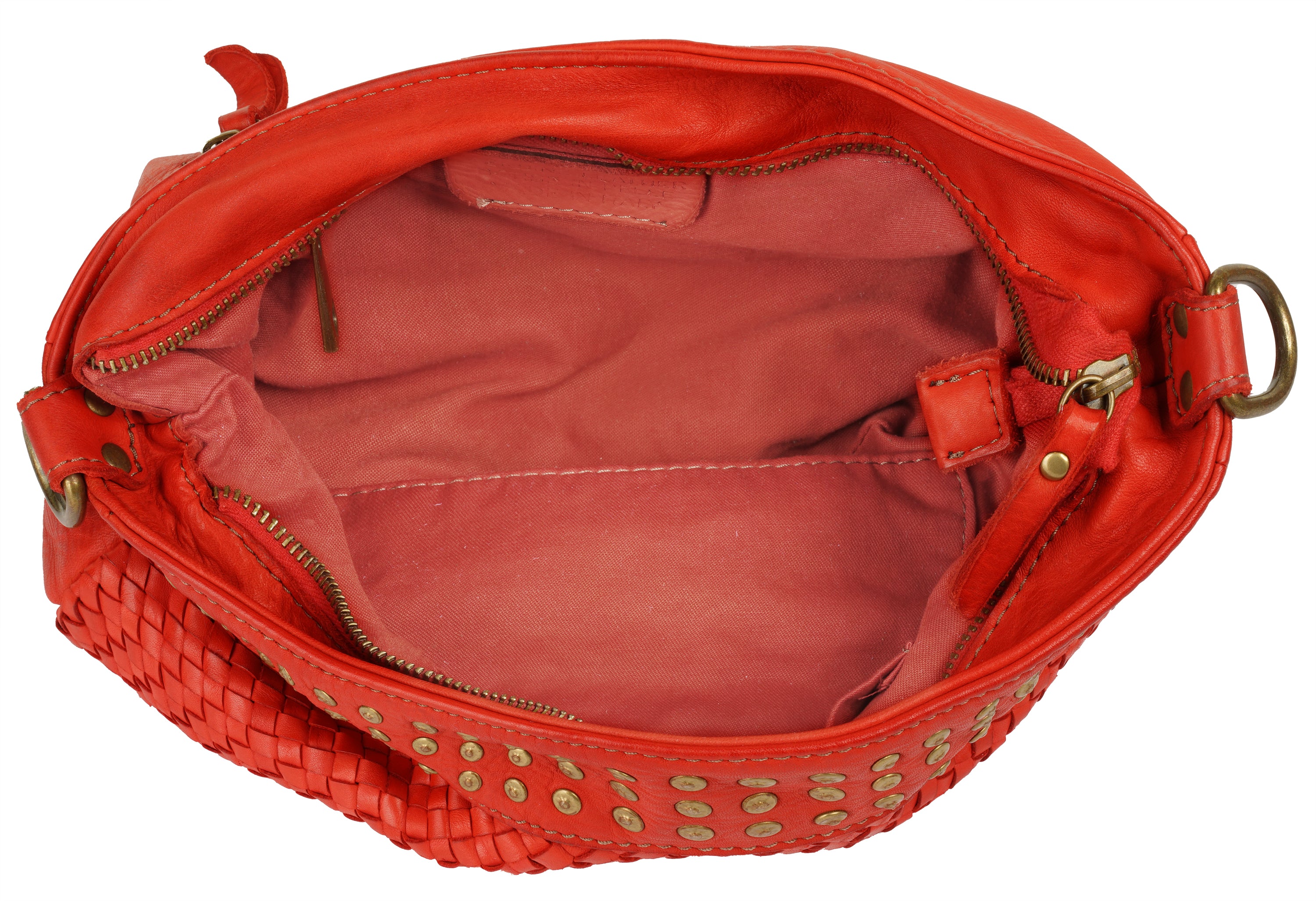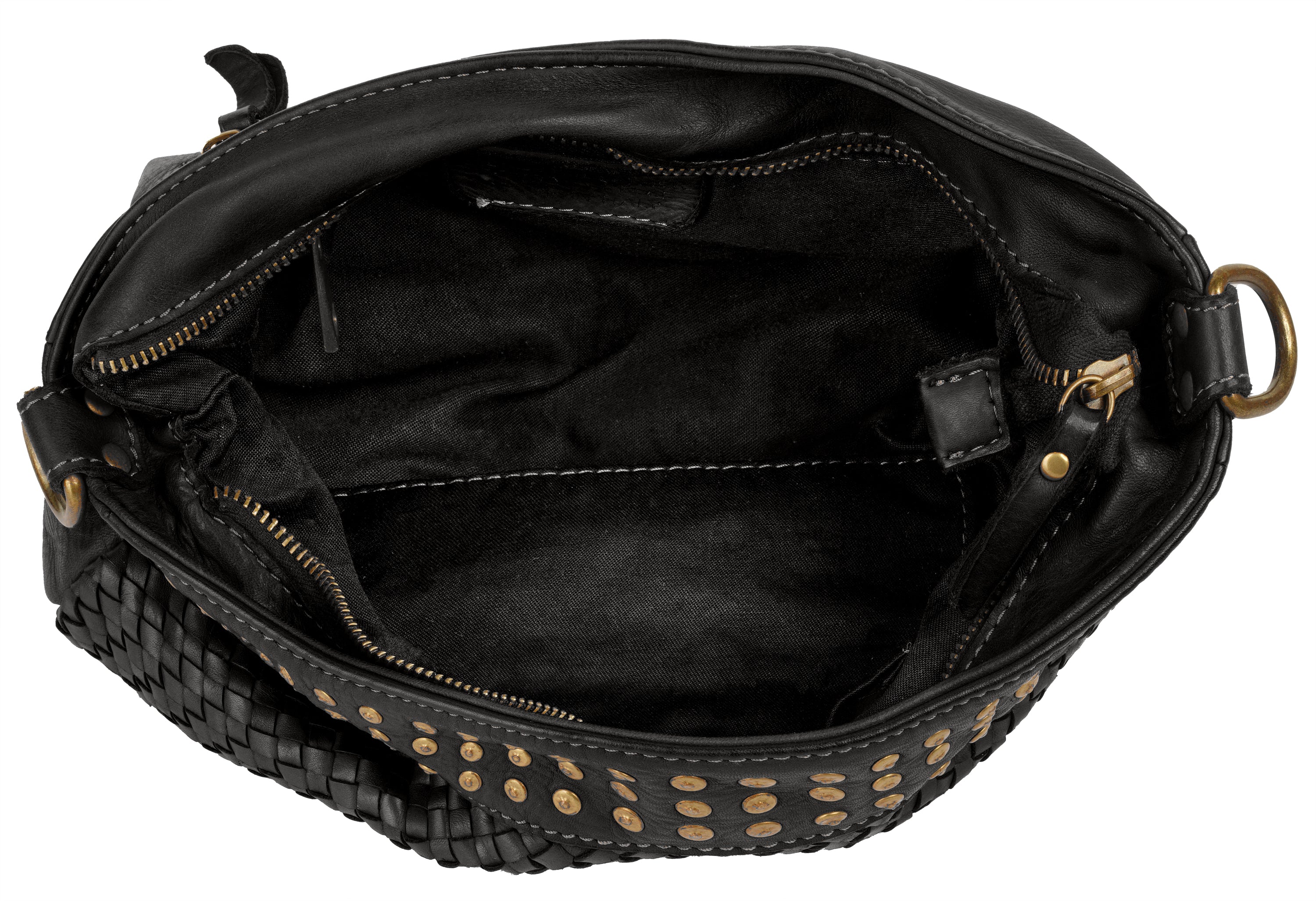Diese Damen Leder Umhängetasche von Samantha Look verleiht Ihnen einen rebellischen Hauch! Eine verspielte Flechtoptik & Nieten peppen jedes Ihrer Outfits auf. Verwahren Sie im Hauptfach Ihrer Handtasche geschützt Portemonnaie, Smartphone & eine kleine Wasserflasche. Wichtiges haben Sie dank eines Rückfaches körpernah und sicher bei sich. Ihre Handtasche ist somit ideal geeignet für Abendveranstaltungen, Konzerte oder für ein Getränk mit Freundinnen. Wählen Sie je nach Anlass aus 2 Tragevarianten: klassisch als Handtasche oder lässig als Umhängetasche - Karabiner machen es Ihnen möglich.