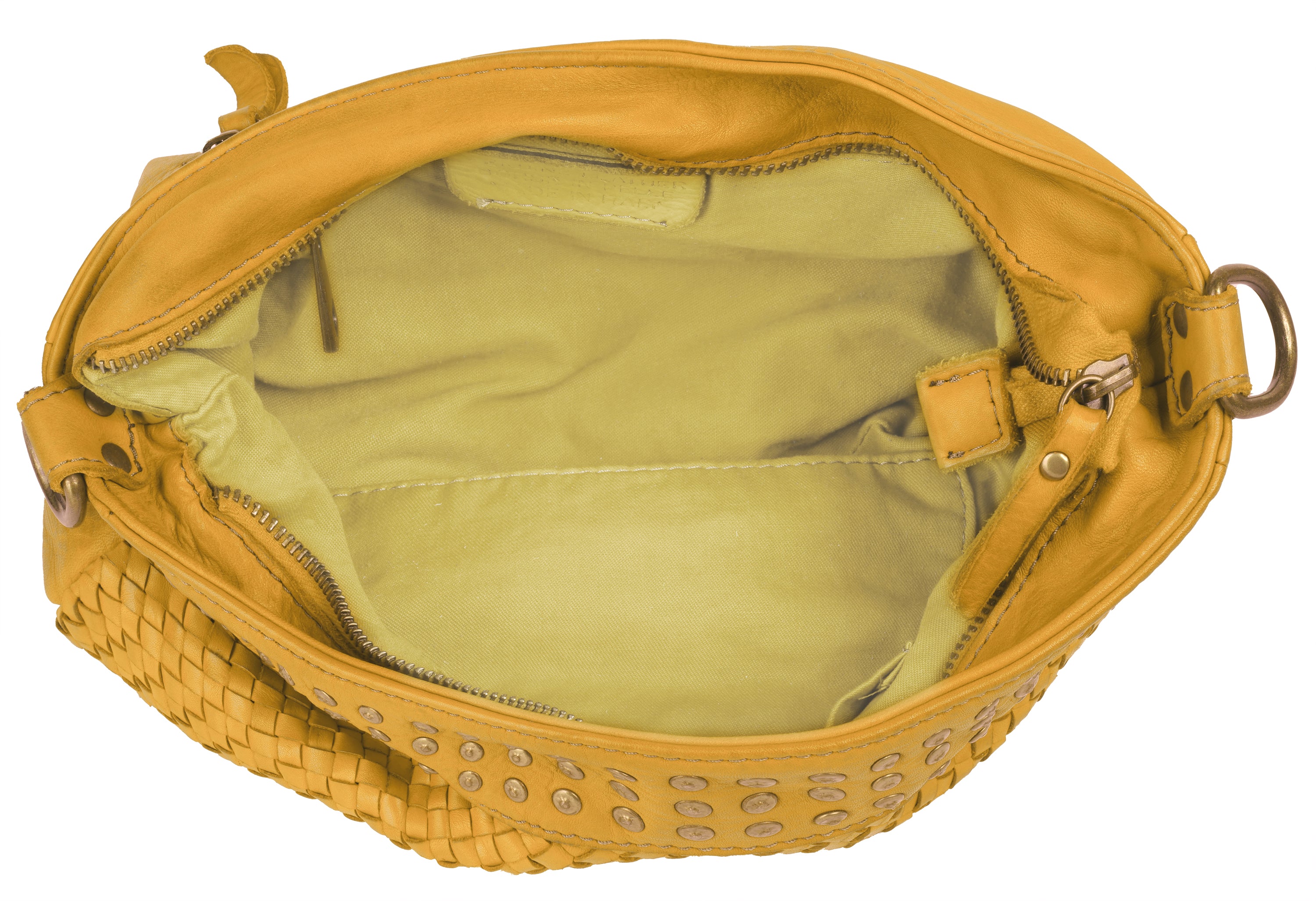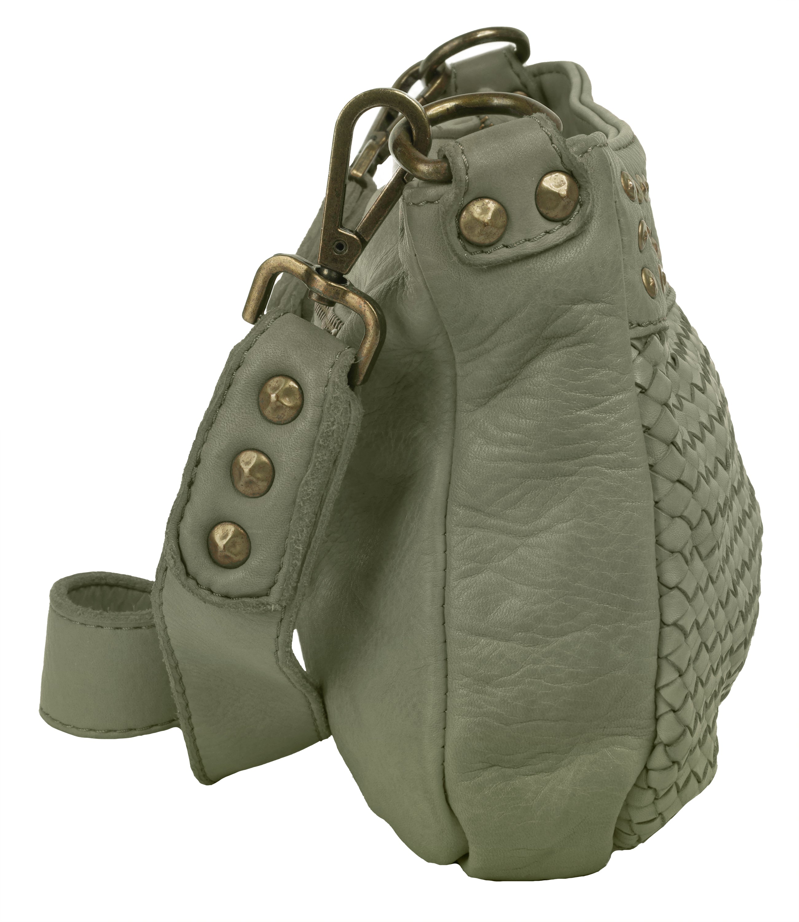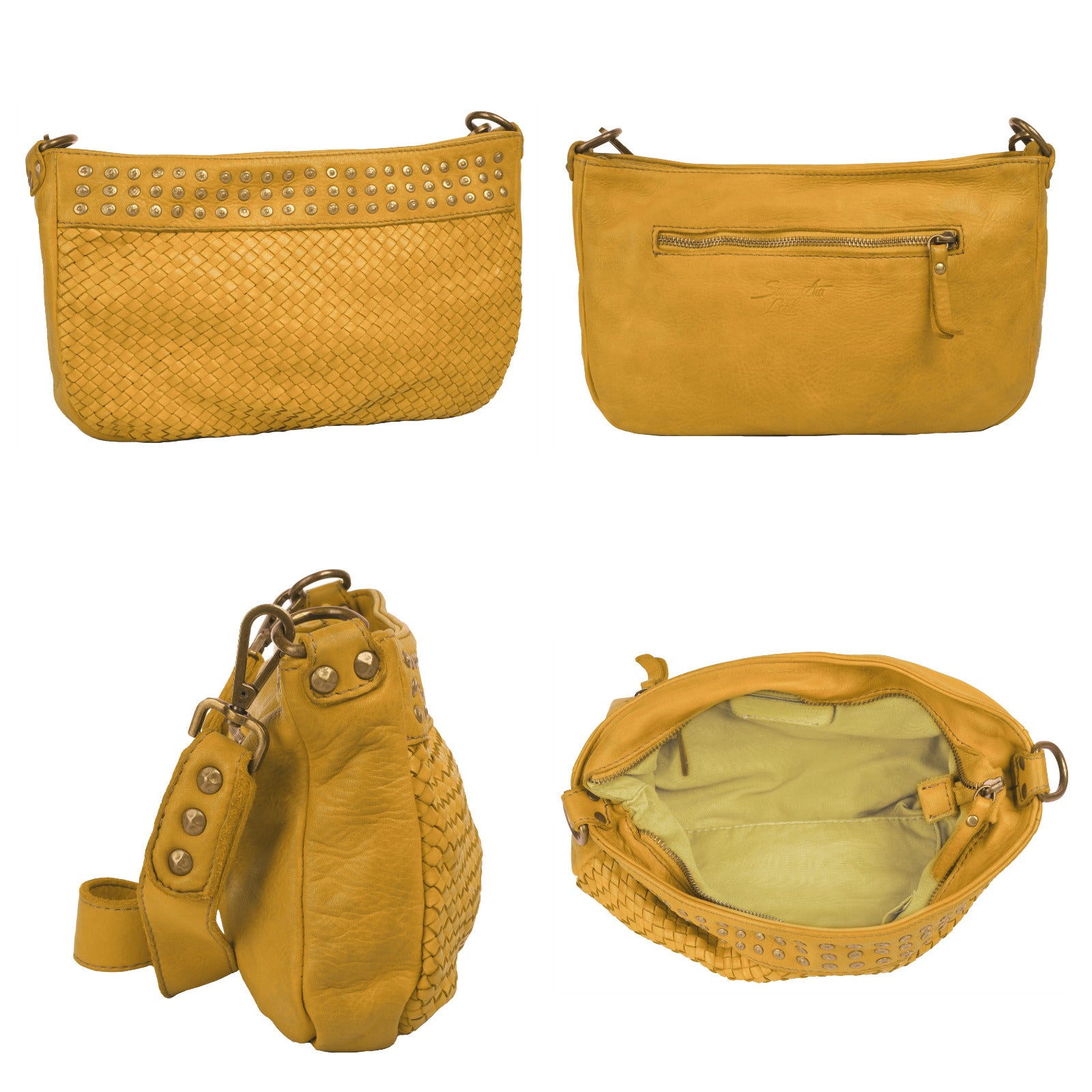 Diese Damen Leder Umhängetasche von Samantha Look verleiht Ihnen einen rebellischen Hauch! Eine verspielte Flechtoptik & Nieten peppen jedes Ihrer Outfits auf. Verwahren Sie im Hauptfach Ihrer Handtasche geschützt Portemonnaie, Smartphone & eine kleine Wasserflasche. Wichtiges haben Sie dank eines Rückfaches körpernah und sicher bei sich. Ihre Handtasche ist somit ideal geeignet für Abendveranstaltungen, Konzerte oder für ein Getränk mit Freundinnen. Wählen Sie je nach Anlass aus 2 Tragevarianten: klassisch als Handtasche oder lässig als Umhängetasche - Karabiner machen es Ihnen möglich.