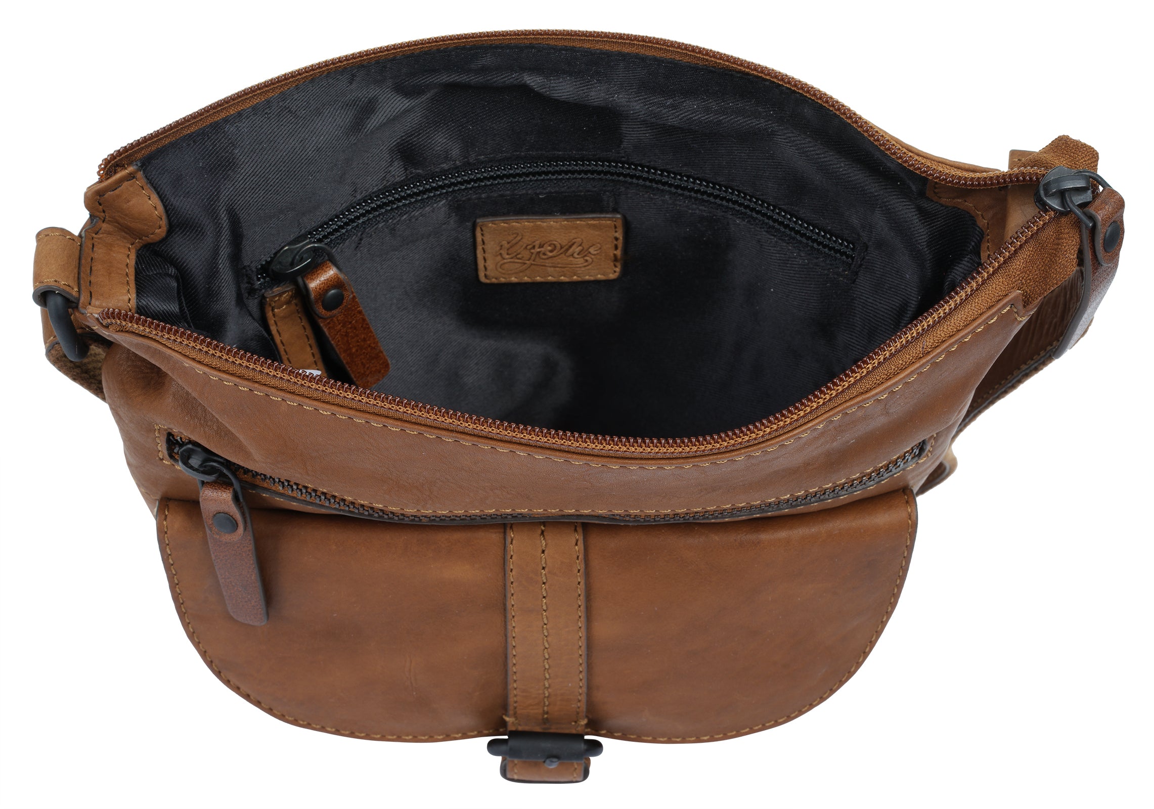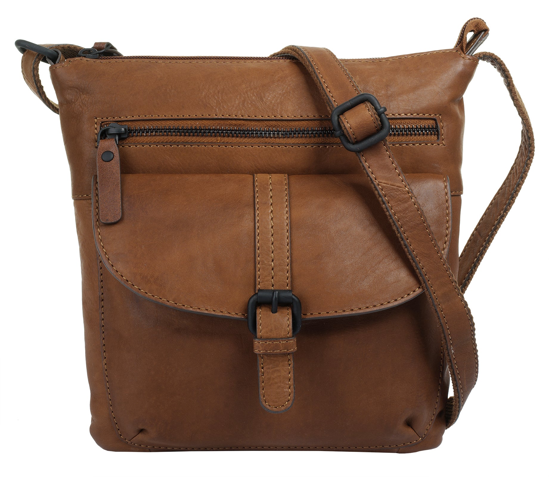 Die Umhängetasche von X-ZONE ist ein echter Hingucker! Auffallend ist das Einsteckfach an der Vorderseite. Der Riemen mit dekorativer Dornschließe verleiht der Tasche in Verbindung mit dem hochwertigen Leder einen Hauch des "gewissen Etwas". Unkompliziert lässt sich die Vordertasche mit einem Magnetverschluss sichern. Für Übersicht im Hauptfach sorgen 2 Einsteckfächer sowie ein Reißverschlussfach. Doch das Highlight ist das Rückholbändchen für Ihren Schlüssel, damit sie diesen nicht lange suchen müssen!