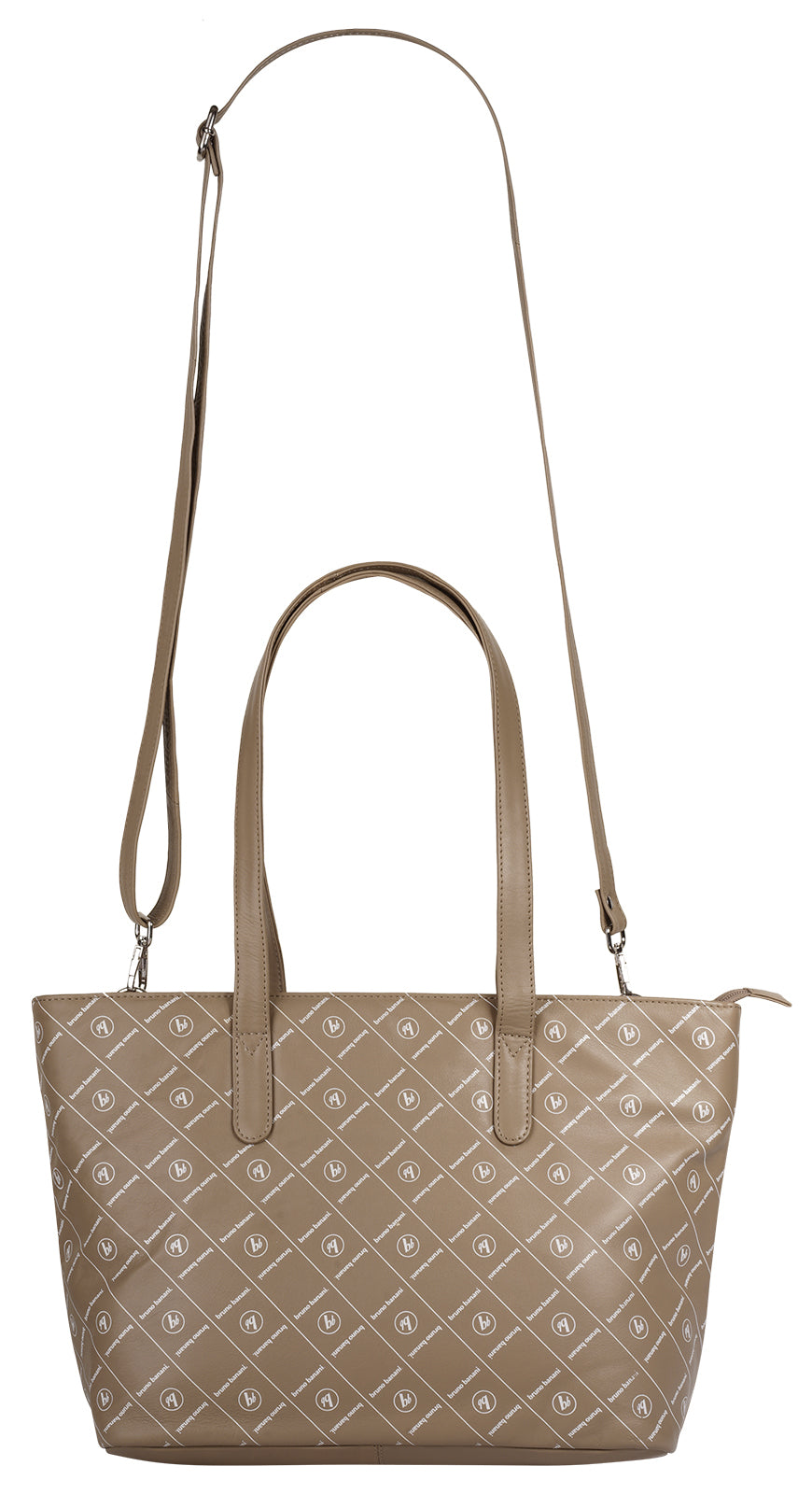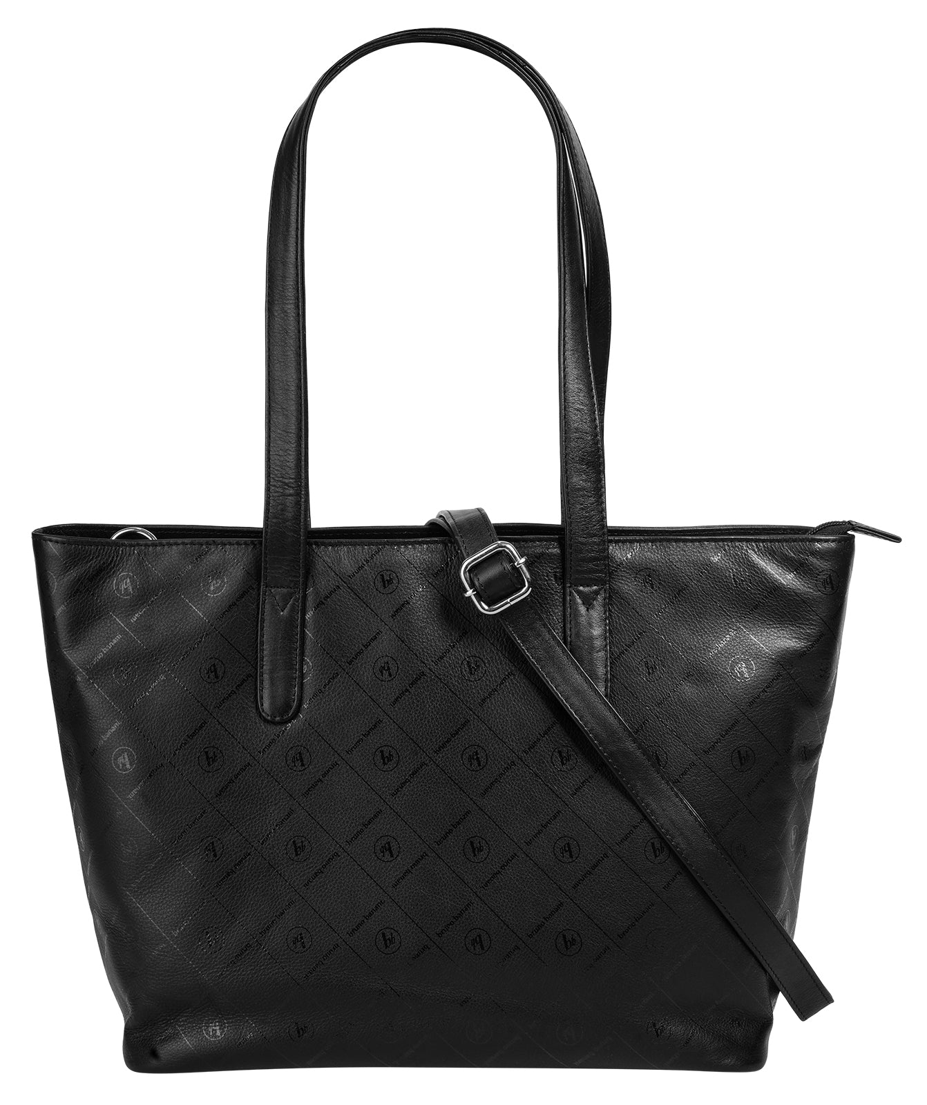 Der Leder Shopper von bruno banani trägt seinen Markennamen mit Stolz! Ein feiner Logo-Print schmückt die Vorderseite und peppt damit das ansonsten schlichte Design der Schultertasche auf. Im geräumigen Hauptfach finden Sie verschiedene Einsteckmöglichkeiten für Schlüssel und andere kleine Gegenstände sowie ein Smartphonefach, in welchem Sie Ihr Gerät sicher und stets griffbereit transportieren können. Die Tasche begleitet Sie im Alltag auf Schritt und Tritt und trägt Einkäufe, Arbeitsmaterial, die Ausbeute Ihrer nächsten Shoppingtour und vieles mehr! Für maximalen Tragekomfort können Sie nach Belieben zwischen zwei langen Henkeln und einem abnehmbaren Schultergurt wechseln.