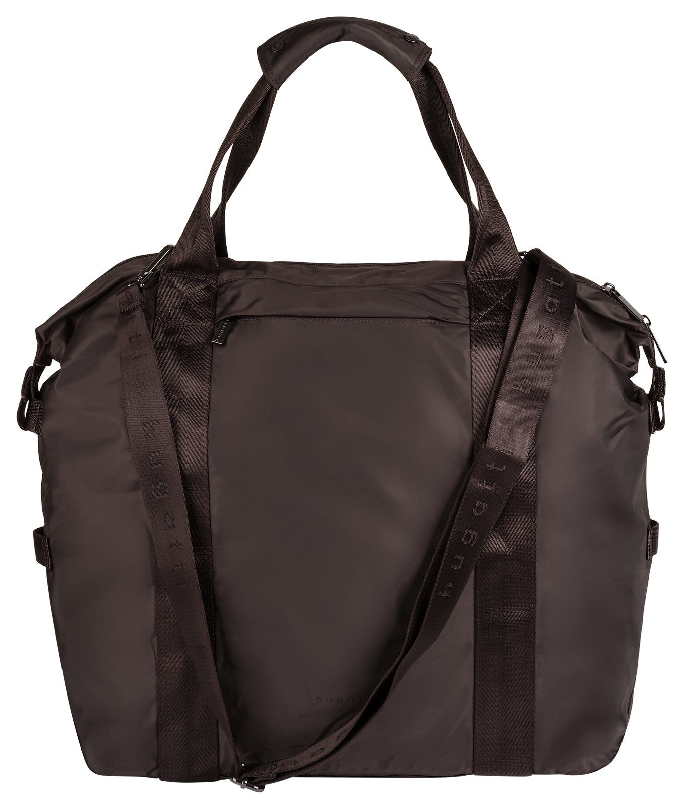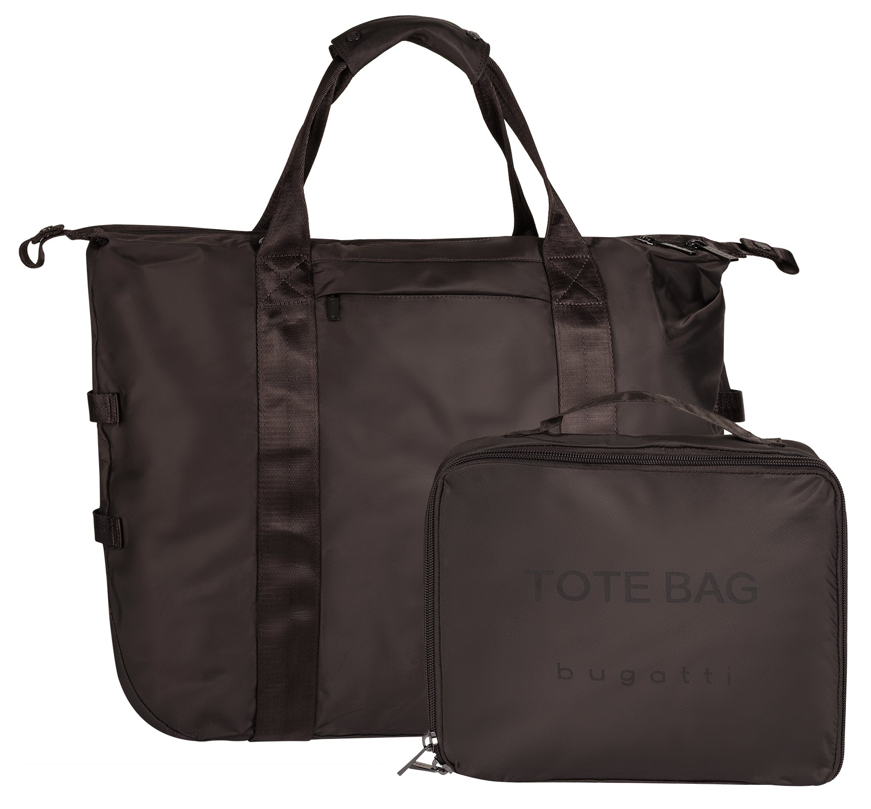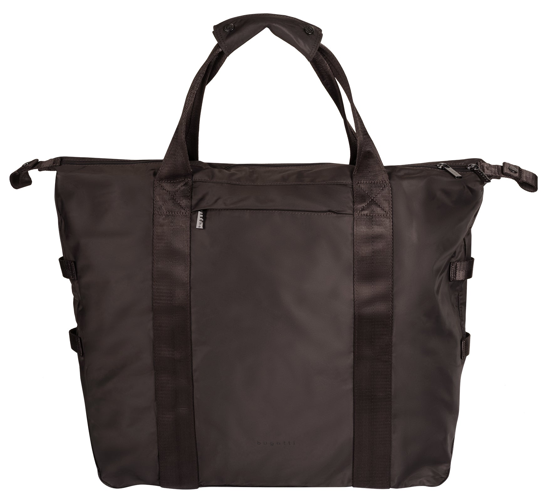 Ein Shopper aus dem Hause bugatti, der seinem Namen alle Ehre macht! Mit seinem geringen Gewicht und pflegeleichten Material ist er der perfekte Gefährte für kleine und große Abenteuer. Das geräumige Hauptfach trägt alles von der Ausbeute des spontanen Shoppingtrips bis hin zum Wocheneinkauf. Sogar als Reisetasche kann er verwendet werden! Dabei bieten sich verschieden große Einsteckmöglichkeiten ideal zur Aufbewahrung von wichtigen Gegenständen an. So sind Ihre Essentials auch bei einer gut gefüllten Tasche stets nur einen Griff entfernt. Ein verstellbarer Schultergurt ergänzt die Ausstattung. Benutzen Sie Ihren Shopper mal nicht, lässt er sich platzsparend in der Reißverschlusstasche verstauen. Geheimtipp: sie eignet sich ansonsten ausgezeichnet als Kosmetiktasche!