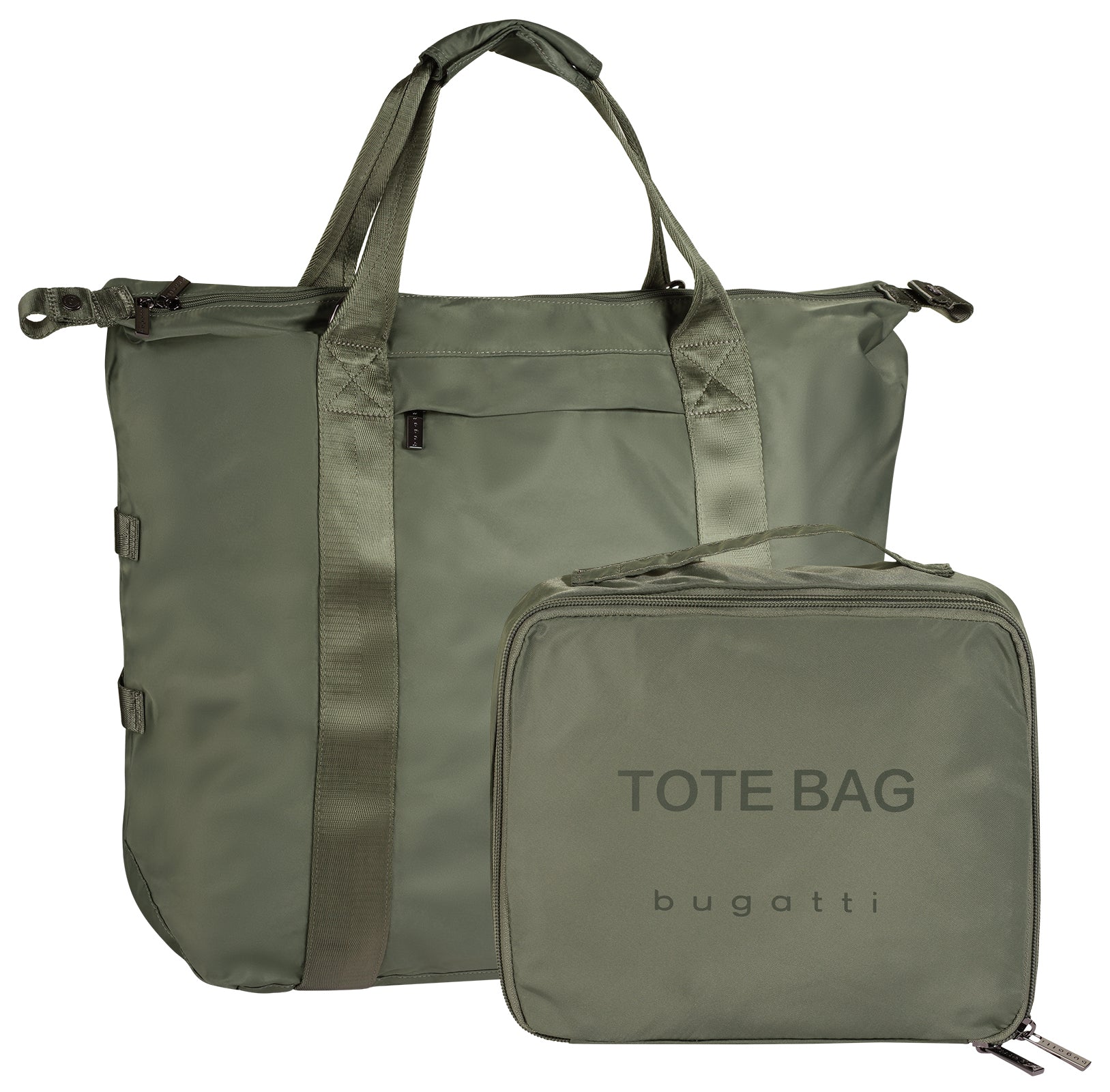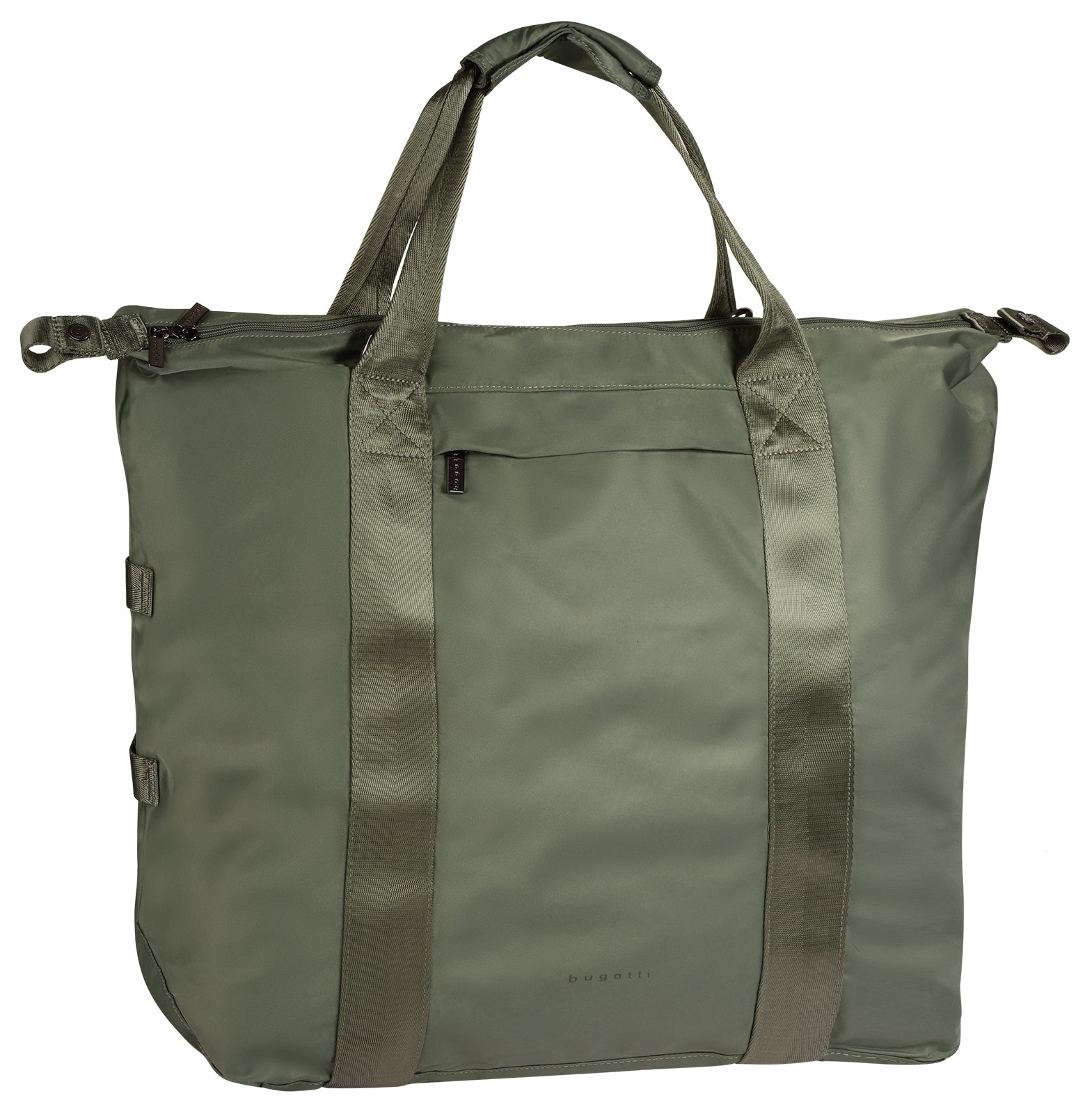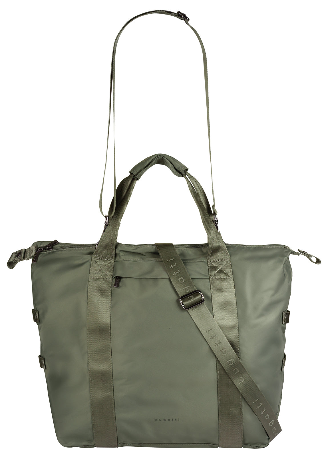 Ein Shopper aus dem Hause bugatti, der seinem Namen alle Ehre macht! Mit seinem geringen Gewicht und pflegeleichten Material ist er der perfekte Gefährte für kleine und große Abenteuer. Das geräumige Hauptfach trägt alles von der Ausbeute des spontanen Shoppingtrips bis hin zum Wocheneinkauf. Sogar als Reisetasche kann er verwendet werden! Dabei bieten sich verschieden große Einsteckmöglichkeiten ideal zur Aufbewahrung von wichtigen Gegenständen an. So sind Ihre Essentials auch bei einer gut gefüllten Tasche stets nur einen Griff entfernt. Ein verstellbarer Schultergurt ergänzt die Ausstattung. Benutzen Sie Ihren Shopper mal nicht, lässt er sich platzsparend in der Reißverschlusstasche verstauen. Geheimtipp: sie eignet sich ansonsten ausgezeichnet als Kosmetiktasche!