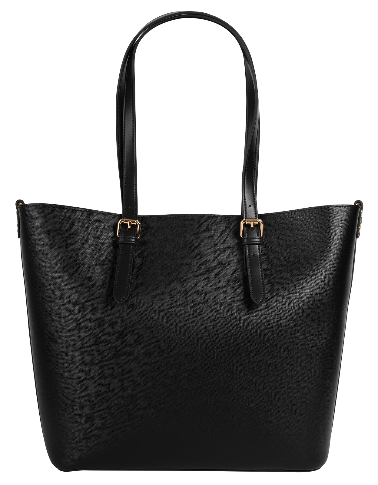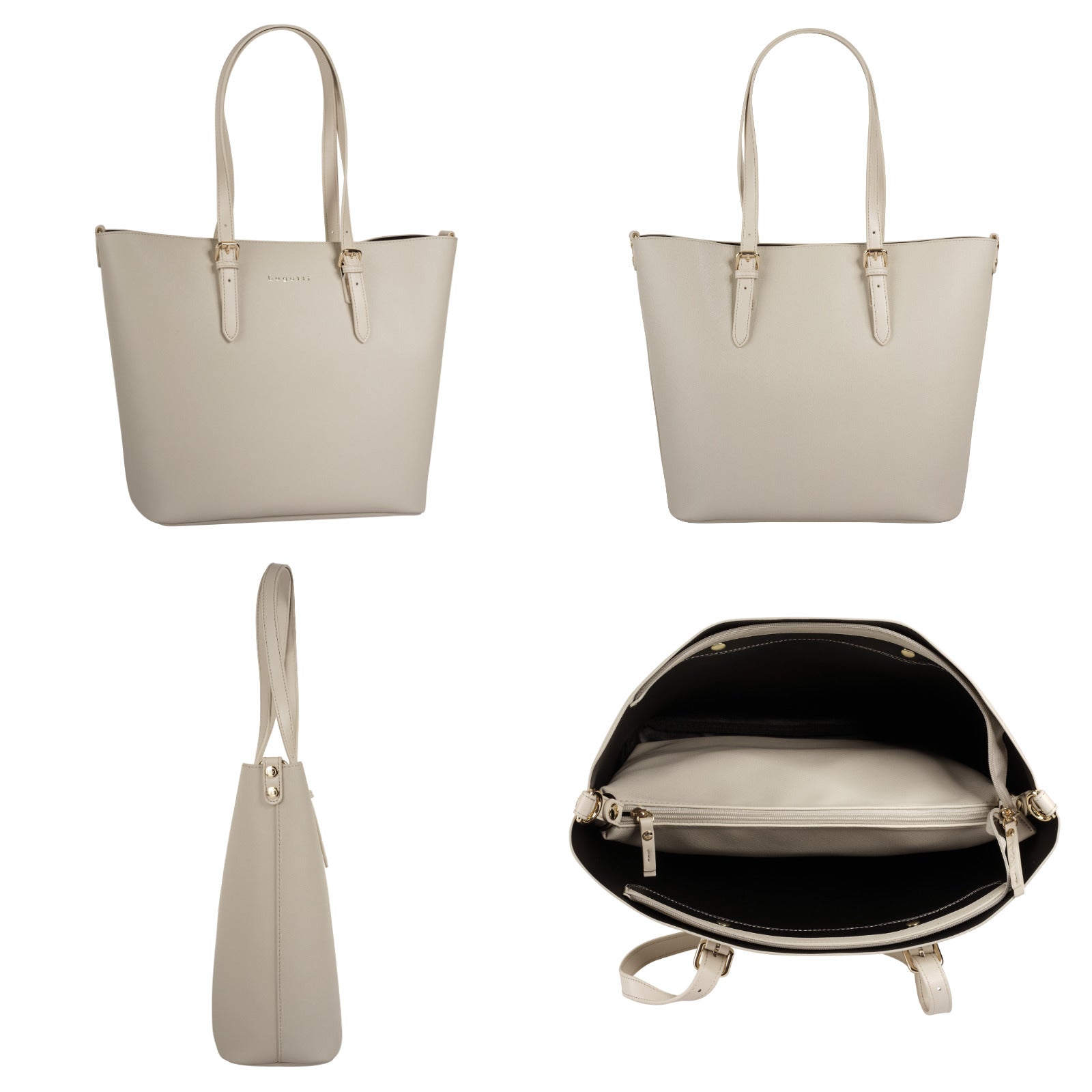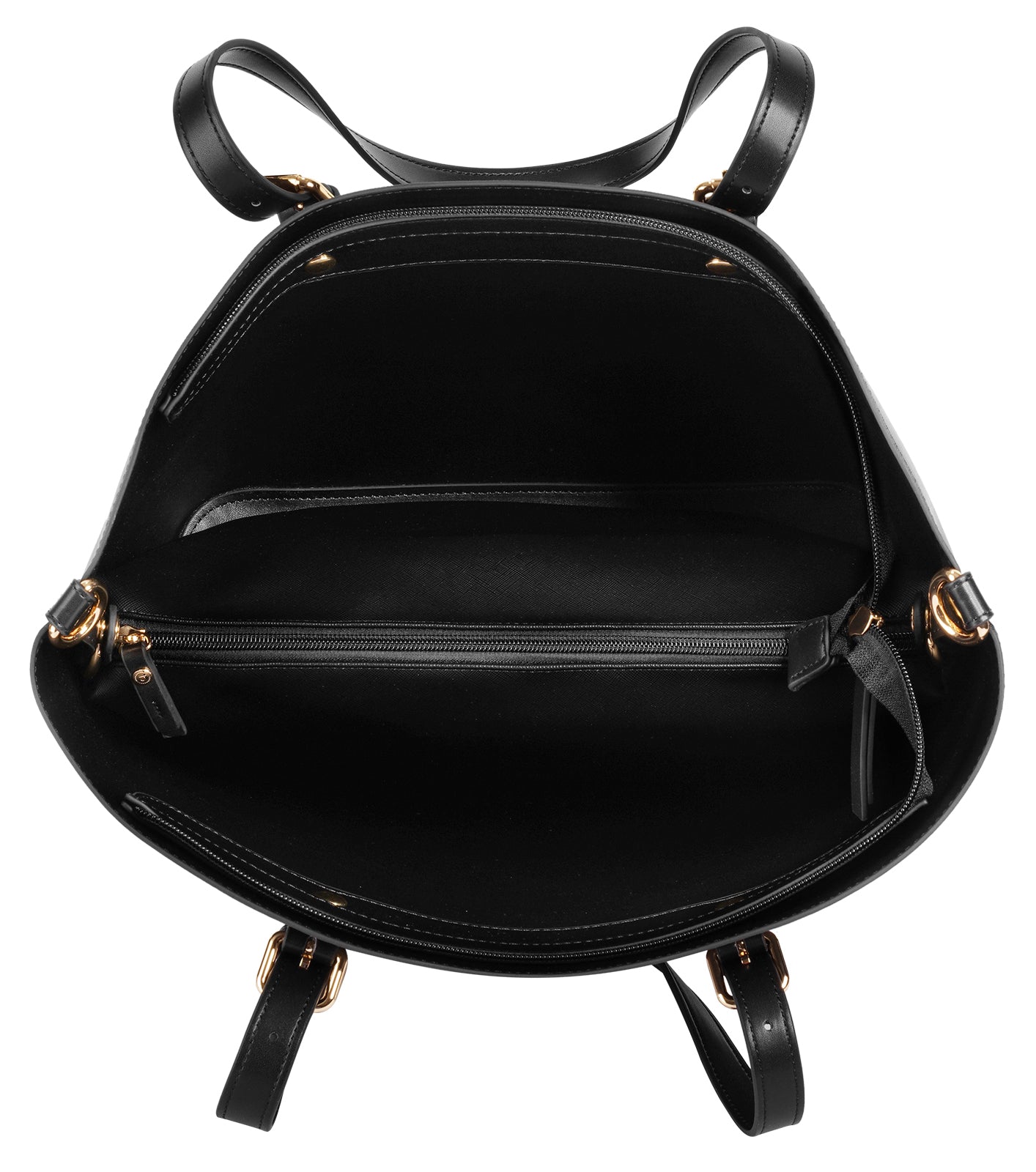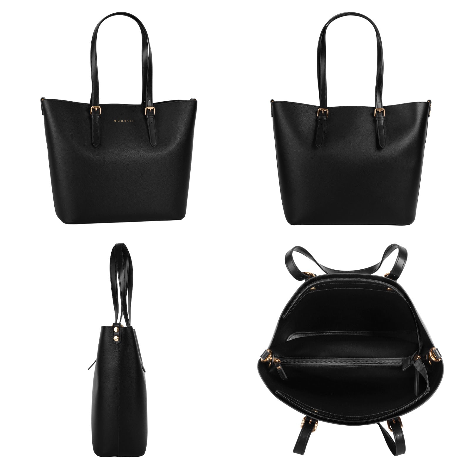 Mit dem Shopper von bugatti gehören Platzprobleme endgültig der Vergangenheit an! Sein geräumiges Hauptfach trägt alles, von alltäglichen Essentials bis hin zur Ausbeute spontaner Shoppingtouren. Mithilfe der verschließ- und herausnehmbaren Innentasche lässt sich Ihr Tascheninhalt noch besser organisieren. Und das Beste: ausgestattet mit jeweils einem Steck- und Reißverschlussfach sowie passenden Ringen für den Schultergurt, kann die Innentasche sogar eigenständig getragen werden! Um Ihnen maximalen Komfort zu bieten, verfügt der Shopper außerdem über Bodennägel, längenverstellbare Henkel sowie einen verstell- und abnehmbaren Schultergurt.