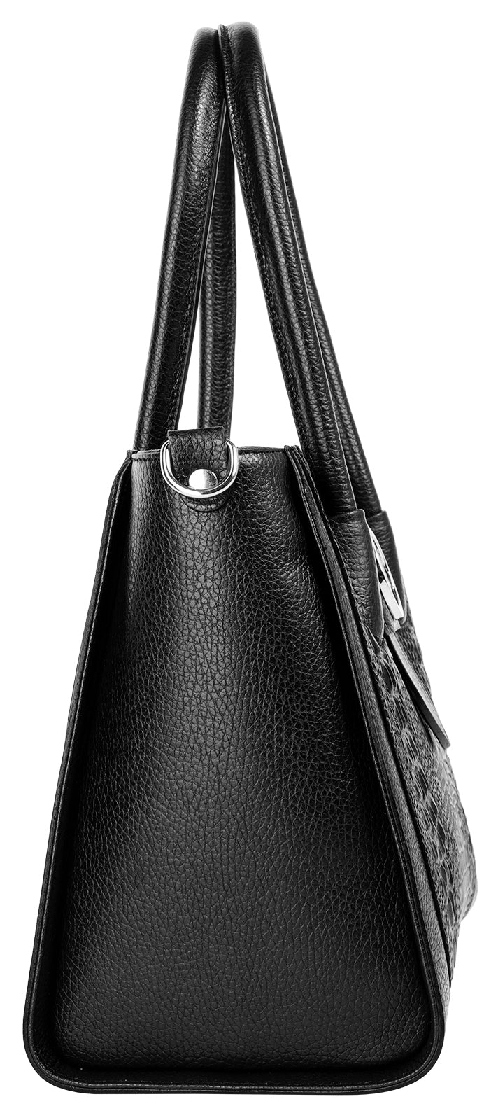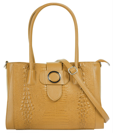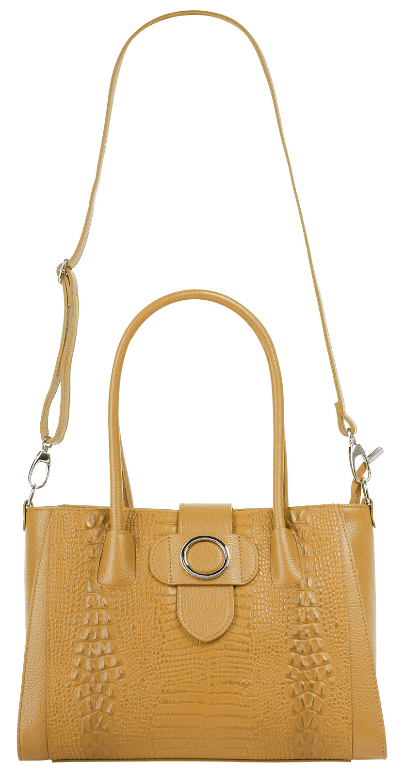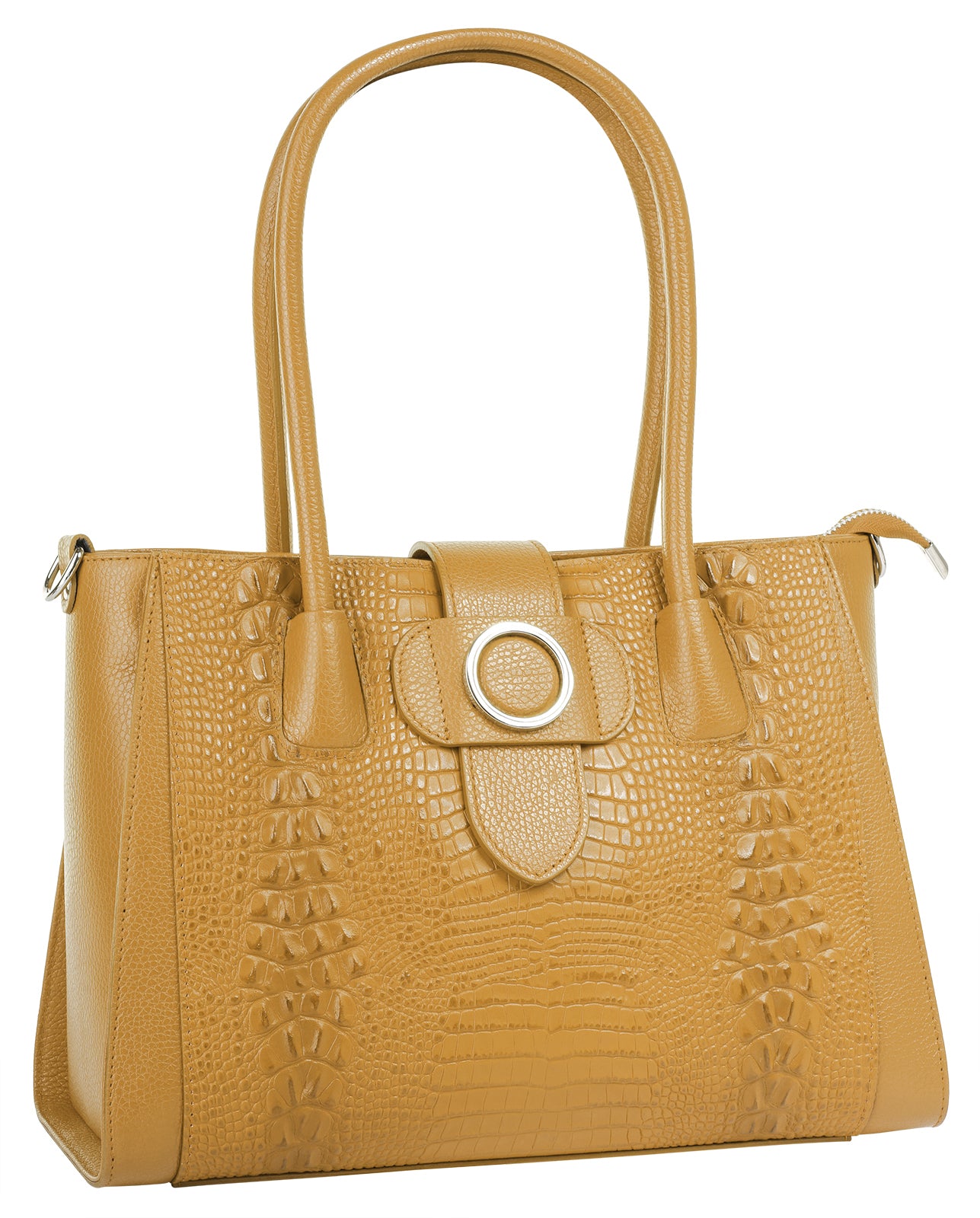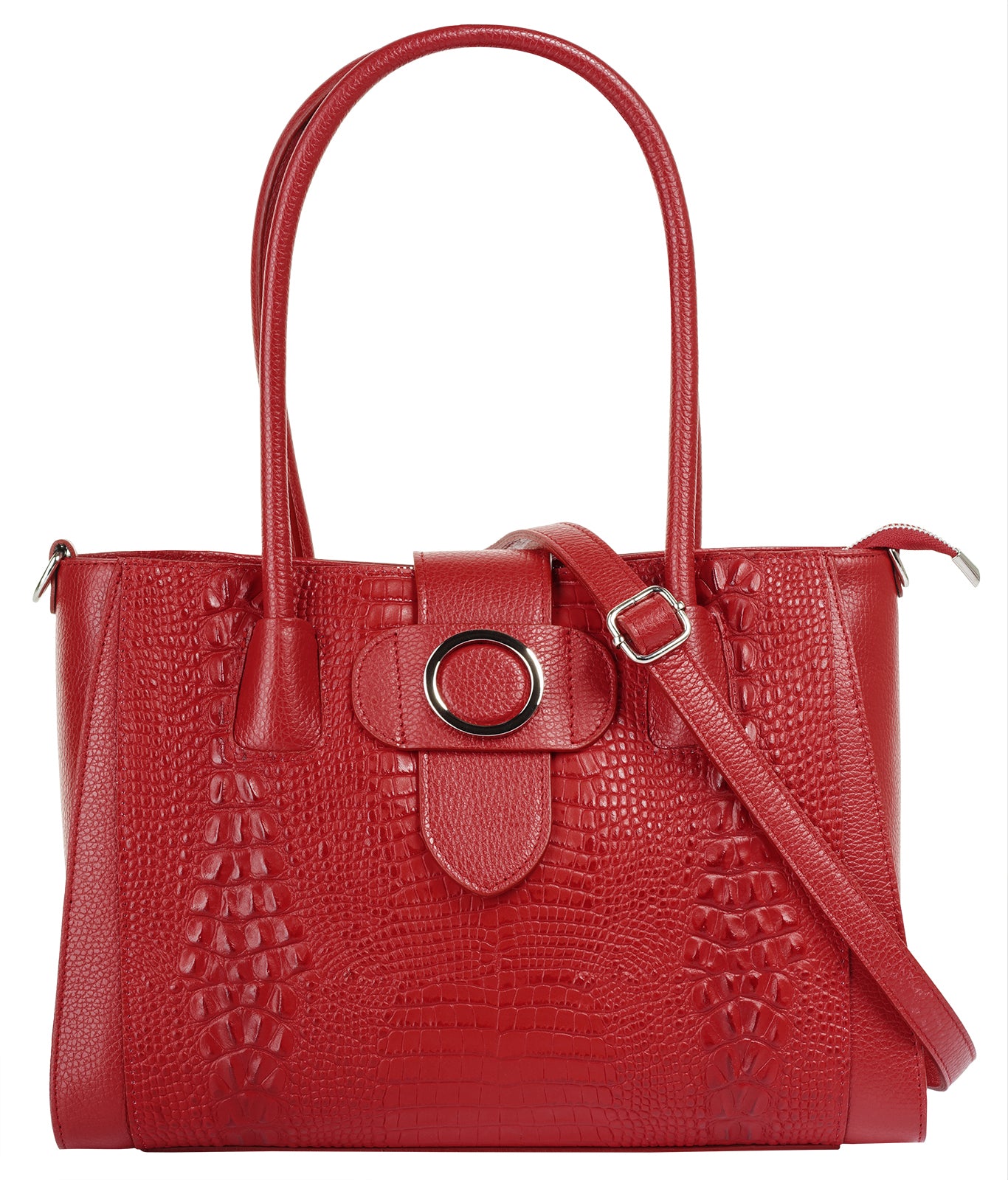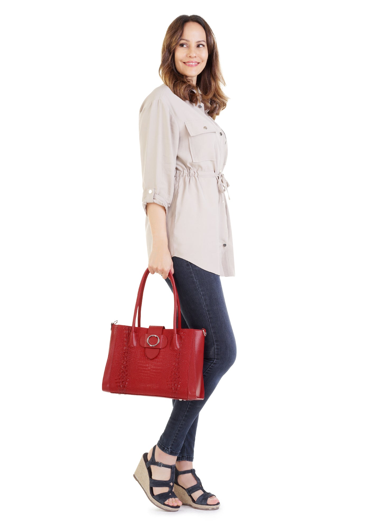Dieser Damen Leder Shopper in Kroko Optik von Cluty ist geradezu bestimmt für Sie! Die aufwendige Narbenprägung in Kroko Optik setzt in jedem Ihrer legeren Outfits ein Highlight. Dank einer mittigen Reißverschlusstasche ist das Hauptfach 2-geteilt. Das ermöglicht Ihnen mehr Spielraum in der ordentlichen Verwahrung von Portemonnaie, Wasserflasche und Taschentücher. Besonders raffiniert: Eine Steckschlaufe mit silbernem Detail verschließt Ihren Leder Shopper zusätzlich & sieht schick aus. Je nach Anlass können Sie zwischen 2 Tragevarianten wählen: als Handtasche oder als Umhängetasche. Somit ist Ihre Leder Tasche ideal geeignet für Shopping-Erlebnisse und für den täglichen Gebrauch. Bodennägel schützen Ihren Kroko Shopper vor Abnutzung.
