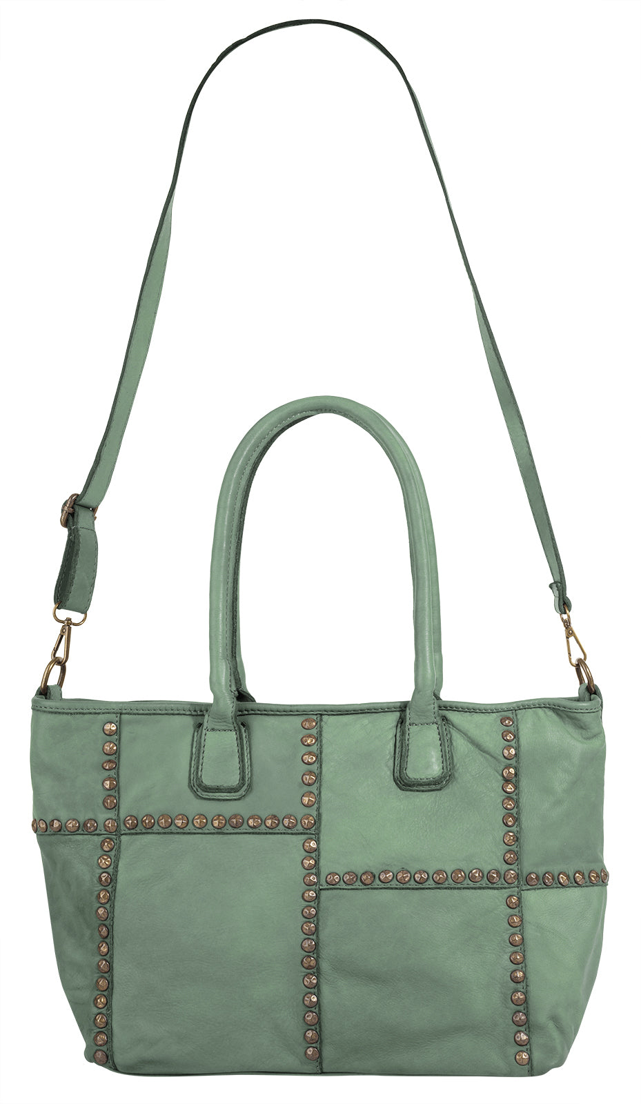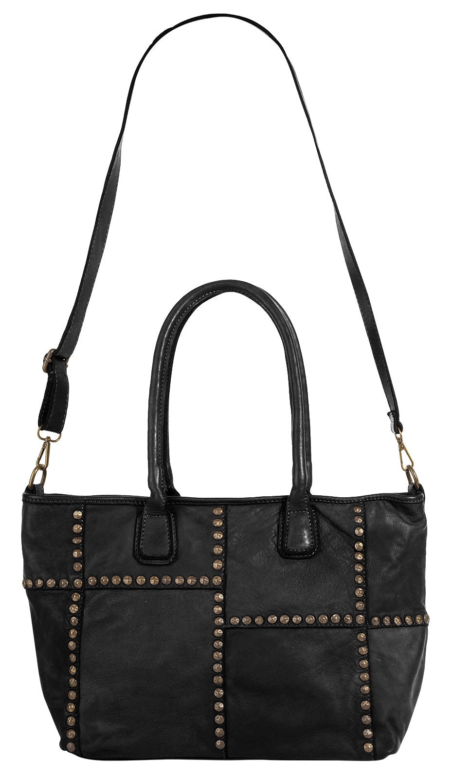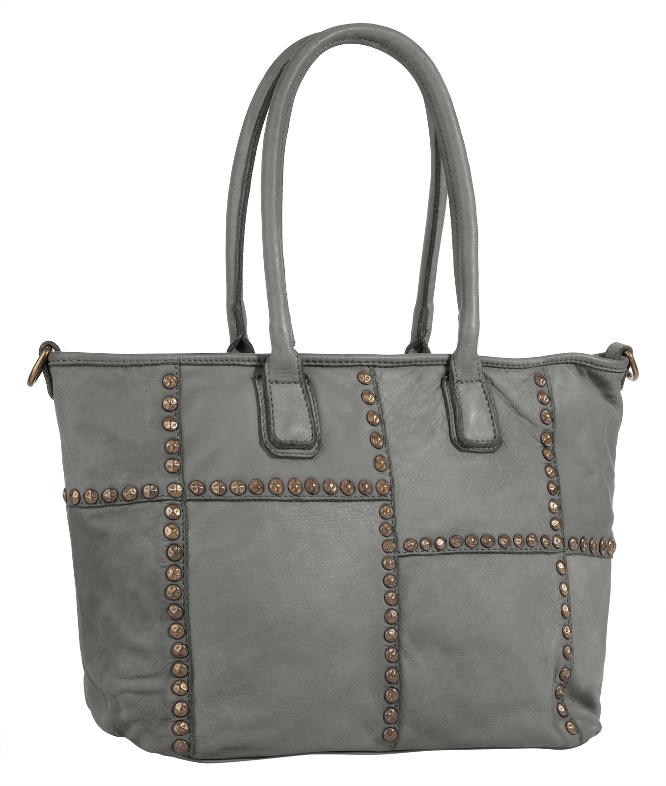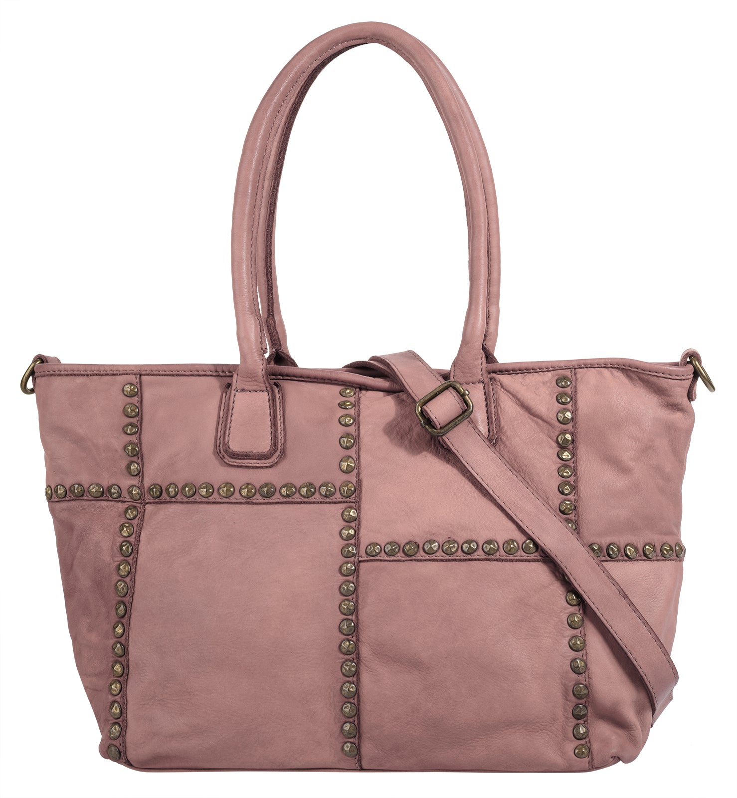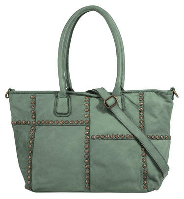 Der italienische Leder Shopper von Samantha Look ist ein echter Blickfang! Metallapplikationen säumen die Nähte des Patchwork Musters und verleihen der Tasche somit einen trendigen Look. Ausgedehnten Shoppingtouren steht mit dem geräumigen Hauptfach nichts im Weg. Für mehr Variation und Komfort beim Tragen sorgt ein abnehmbarer Schultergurt.