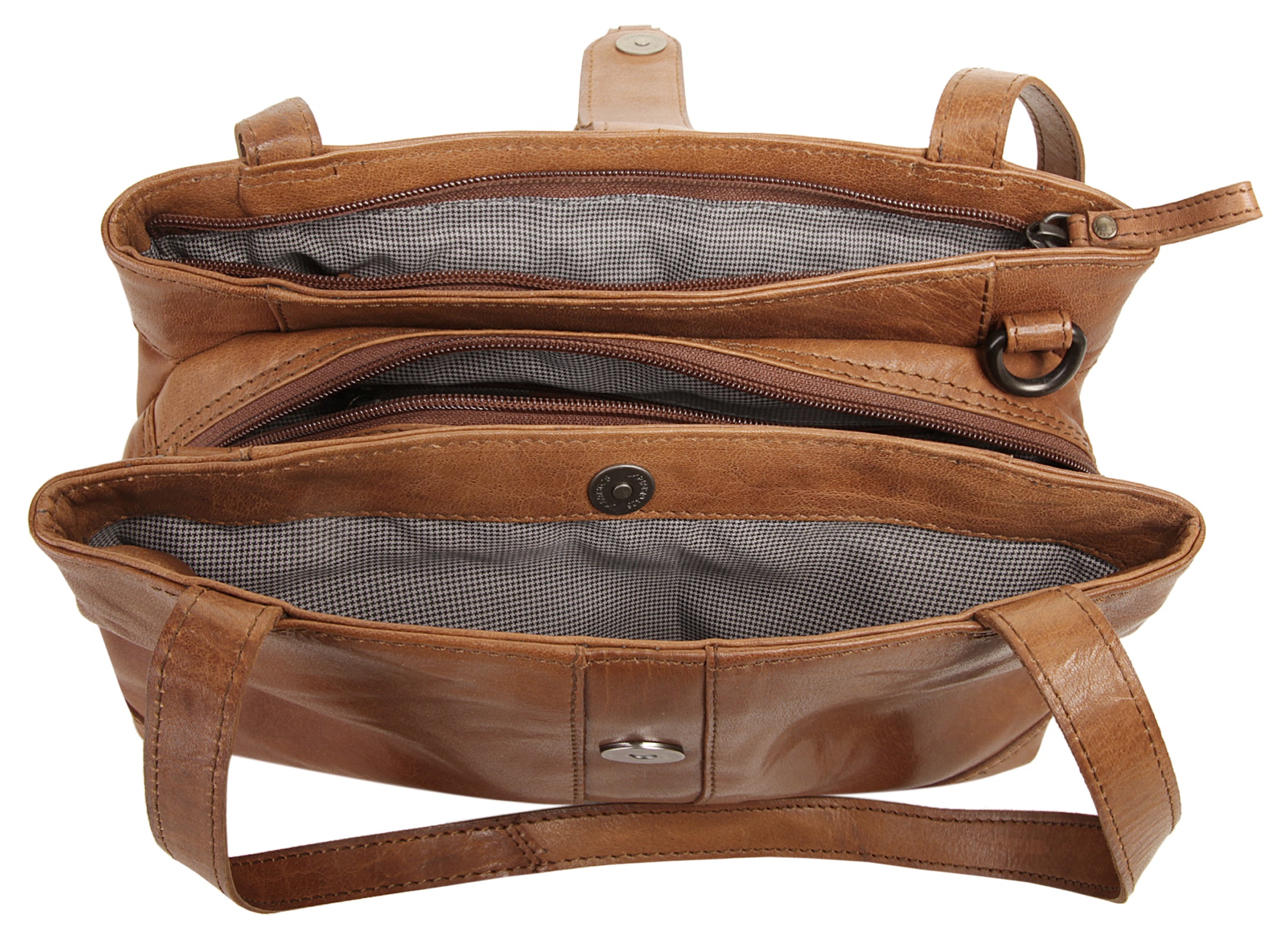 Die Leder Umhängetasche von Spikes & Sparrow macht ihr eigenes Ding: Das Design ist klassisch, das Leder individuell und rustikal! Damit ist die Tasche der beste Beweis, dass Gegensätze wunderbar harmonieren. Das Leder hat eine legere Vintage-Optik und eine besondere Patina. Gleich 3 Hauptfächer geben ihrer Trägerin Übersicht und organisiertes Aufbewahren. Wertsachen wie Geldbörse und Smartphone passen beispielsweise ideal in das versteckte Mittelfach. Die Leder Umhängetasche kann an zwei Henkeln oder einem langen Schulterriemen getragen werden.