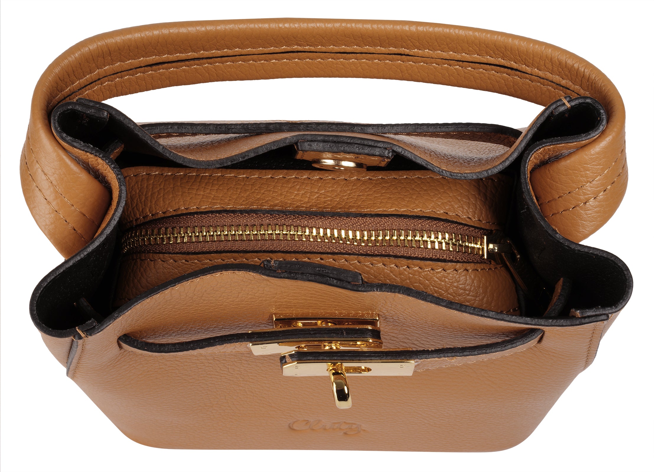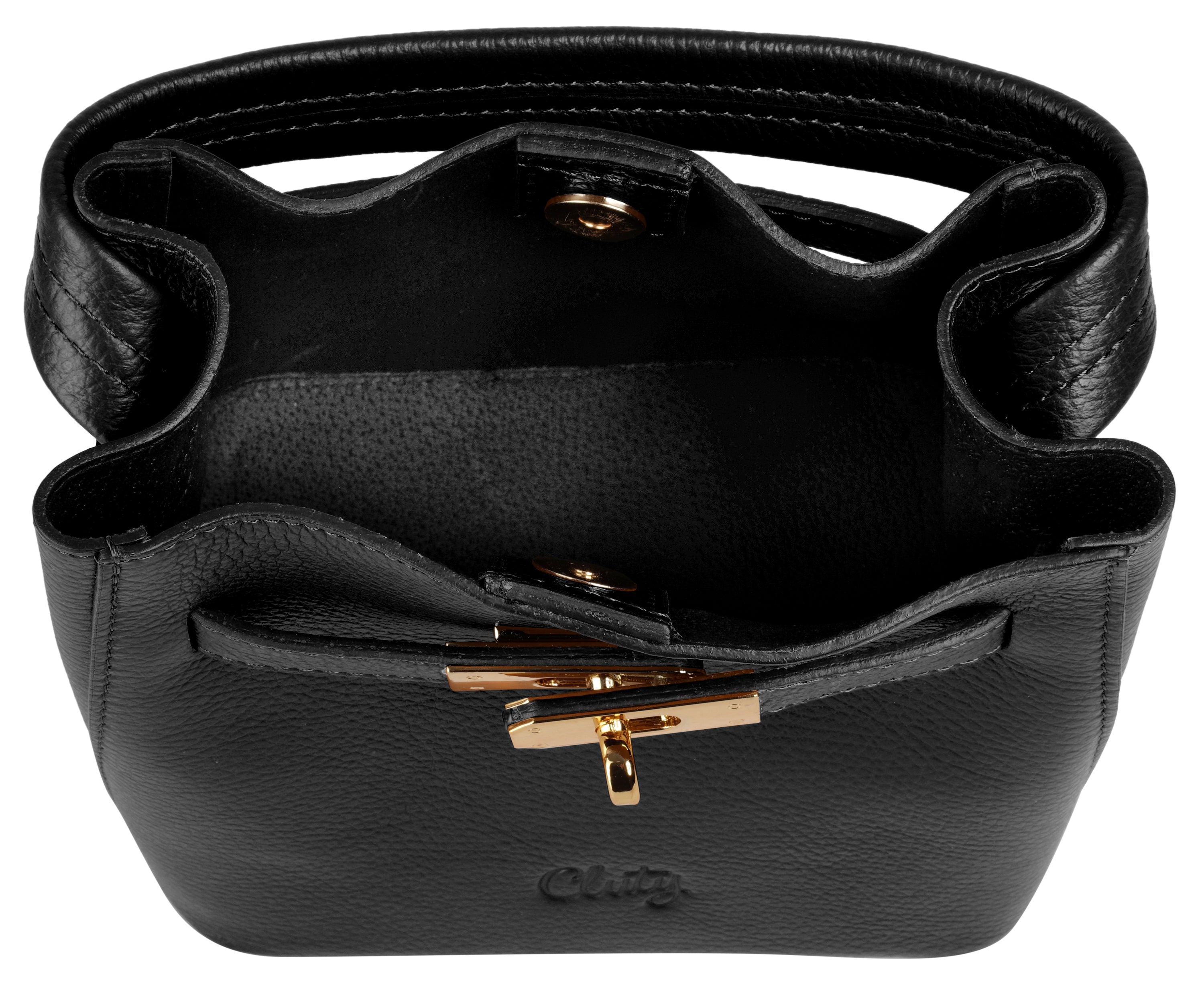 Die italienische Leder Umhängetasche von Cluty setzt jedem Ihrer Outfits das Sahnehäubchen auf. Ihr kompaktes Kleinformat, klassisch elegantes Design und glänzende Metallelemente ergeben zusammen ein ausdrucksstarkes Accessoire und eine wertvolle Bereicherung für Ihre Garderobe. Ob feierliche Anlässe, Abendveranstaltungen oder Stadtbummel: diese Tasche zieht die Blicke auf sich, während sie Ihre wichtigsten Essentials trägt. Das Highlight bildet die herausnehm- und verschließbare Innentasche. Sie kann beim organisieren des Tascheninhalts helfen, eignet sich aber auch hervorragend als separate Kosmetiktäschchen. Ebenso vielseitig sind die Trageoptionen. Wechseln Sie nach Belieben zwischen kurzem Henkel und verstellbarem Schultergurt.