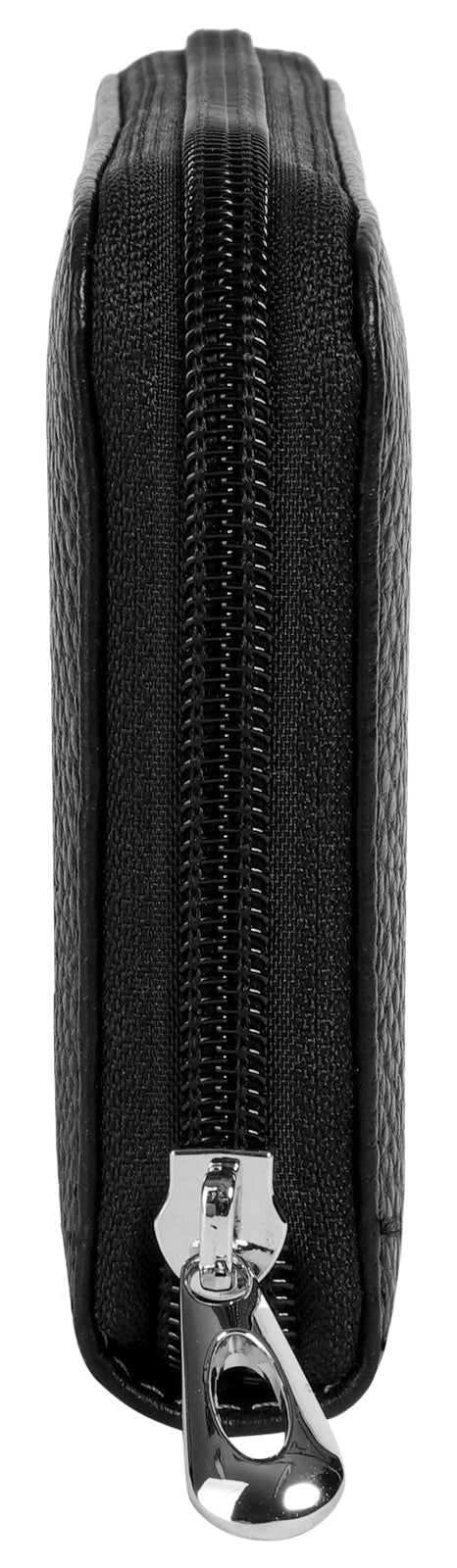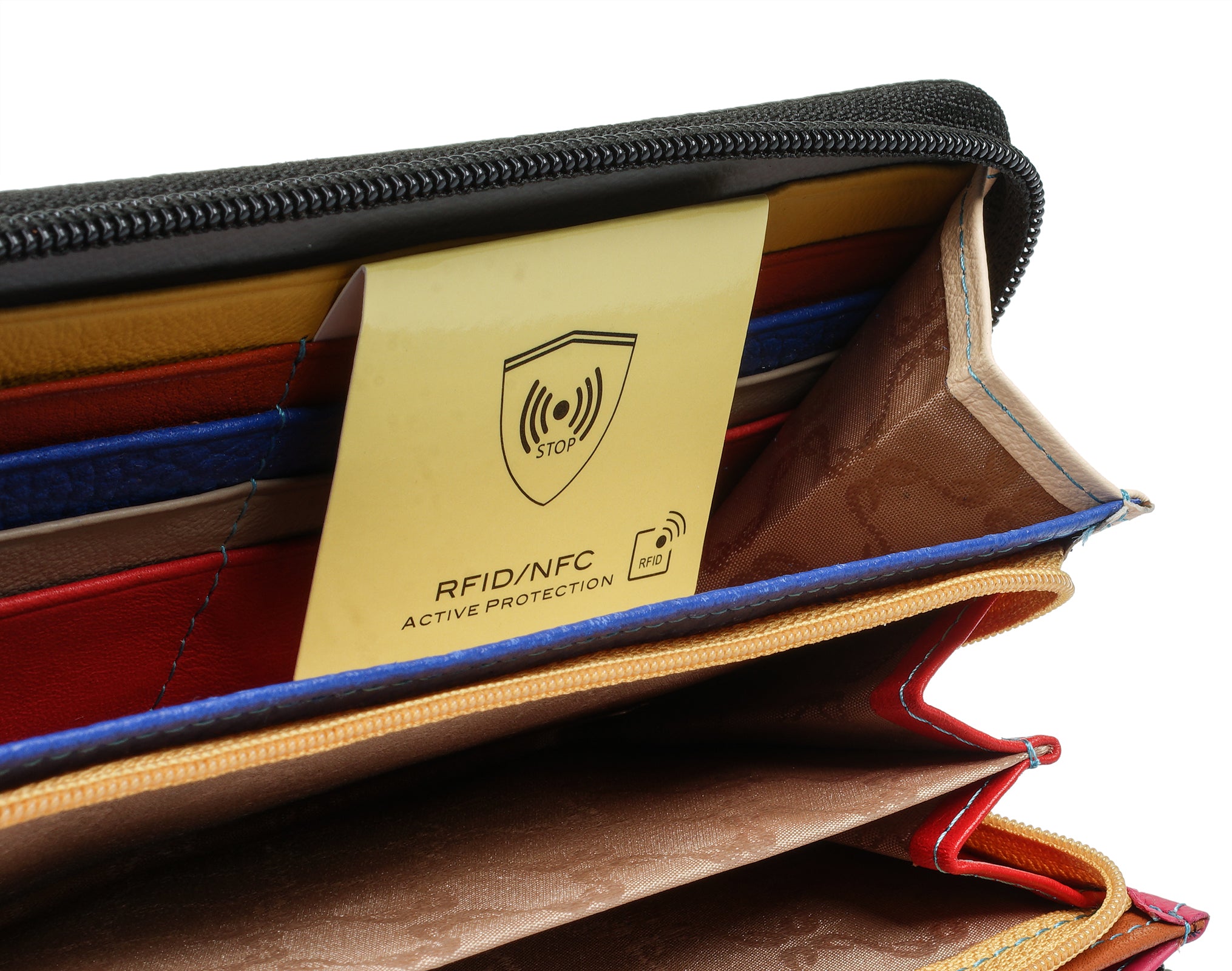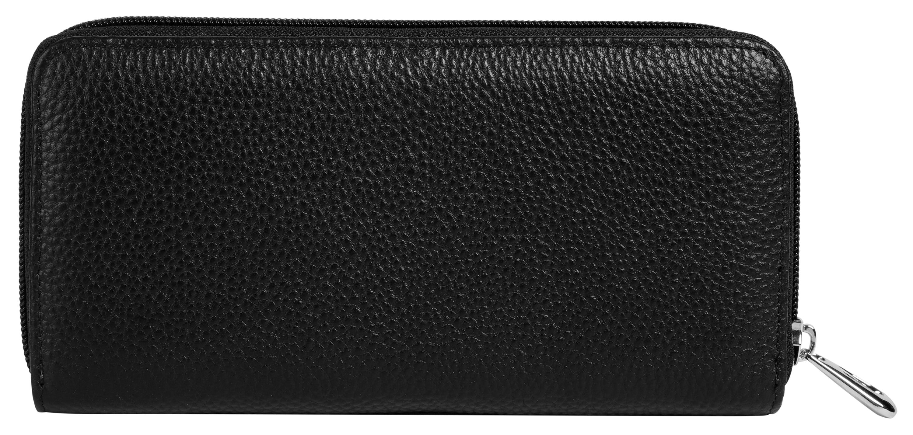 Ihr buntes Inneres präsentiert Ihre Leder Damen Geldbörse von Bagan nur Ihnen. Außen glänzt sie mit einem dezenten und klassischen Look. Das schwarze Leder ist sehr schön gemasert und angenehm geschmeidig. Im Inneren strahlt Ihre Leder Damen Geldbörse von Bagan in fröhlich-bunten Farbtönen. Ein Konzept, das begeistert!