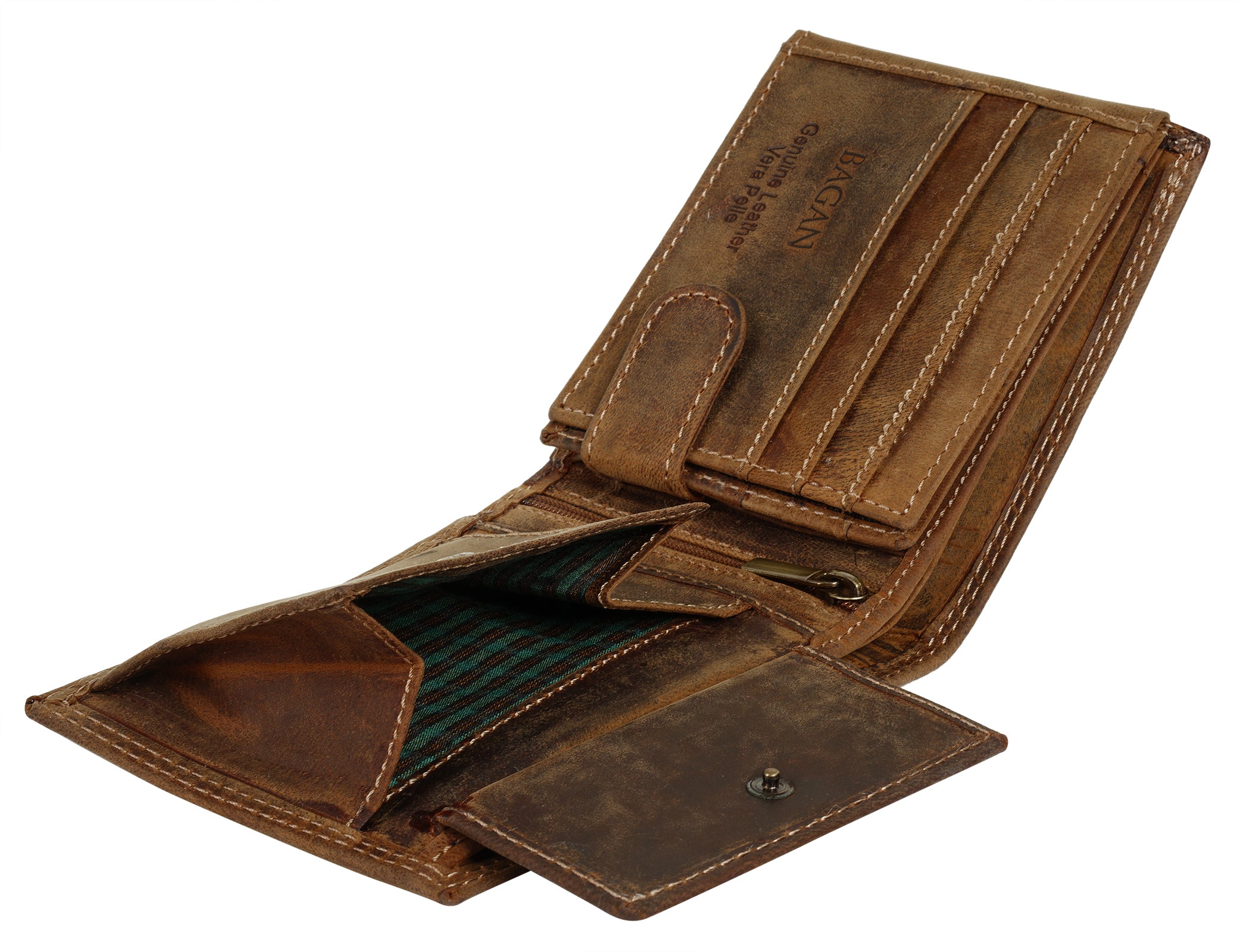 Rustikal, traditionell, klassisch: die Leder Geldbörse von Bagan. Sie findet den perfekten Kompromiss zwischen schmaler Passform und umfangreicher Innenausstattung. Zu letzterer gehören allerlei nützliche Einsteckmöglichkeiten. Darunter befinden sich Sichtfächer, ein Reißverschluss-, ein Einsteckfach und viel mehr.