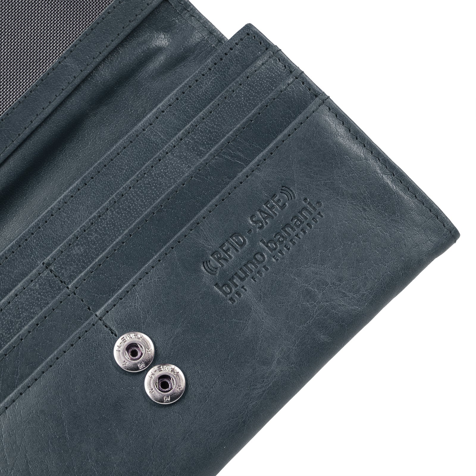 Die Leder Geldbörse von Bruno Banani punktet mit ihrem verspielten Design und einer cleveren Aufteilung im Inneren. Visiten- und Bankkarten können übersichtlich in einem der zahlreichen Kartenfächer untergebracht werden. Ein doppelter Druckknopfverschluss schützt den Inhalt Ihres Portemonnaies und eine RFID-Folie schützt Ihre sensiblen Daten vor unautorisiertem Auslesen.
