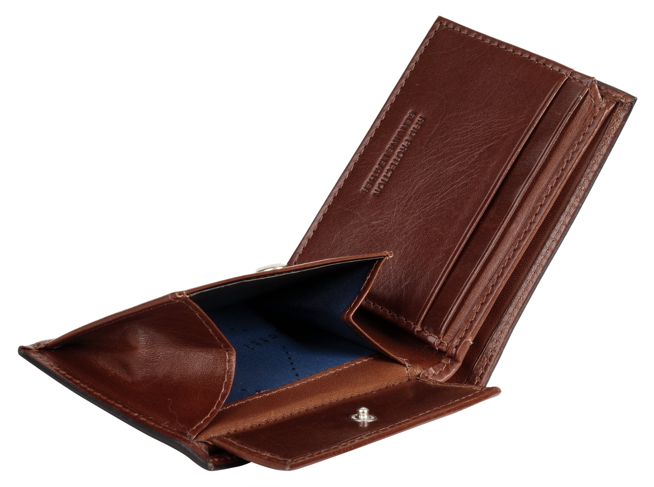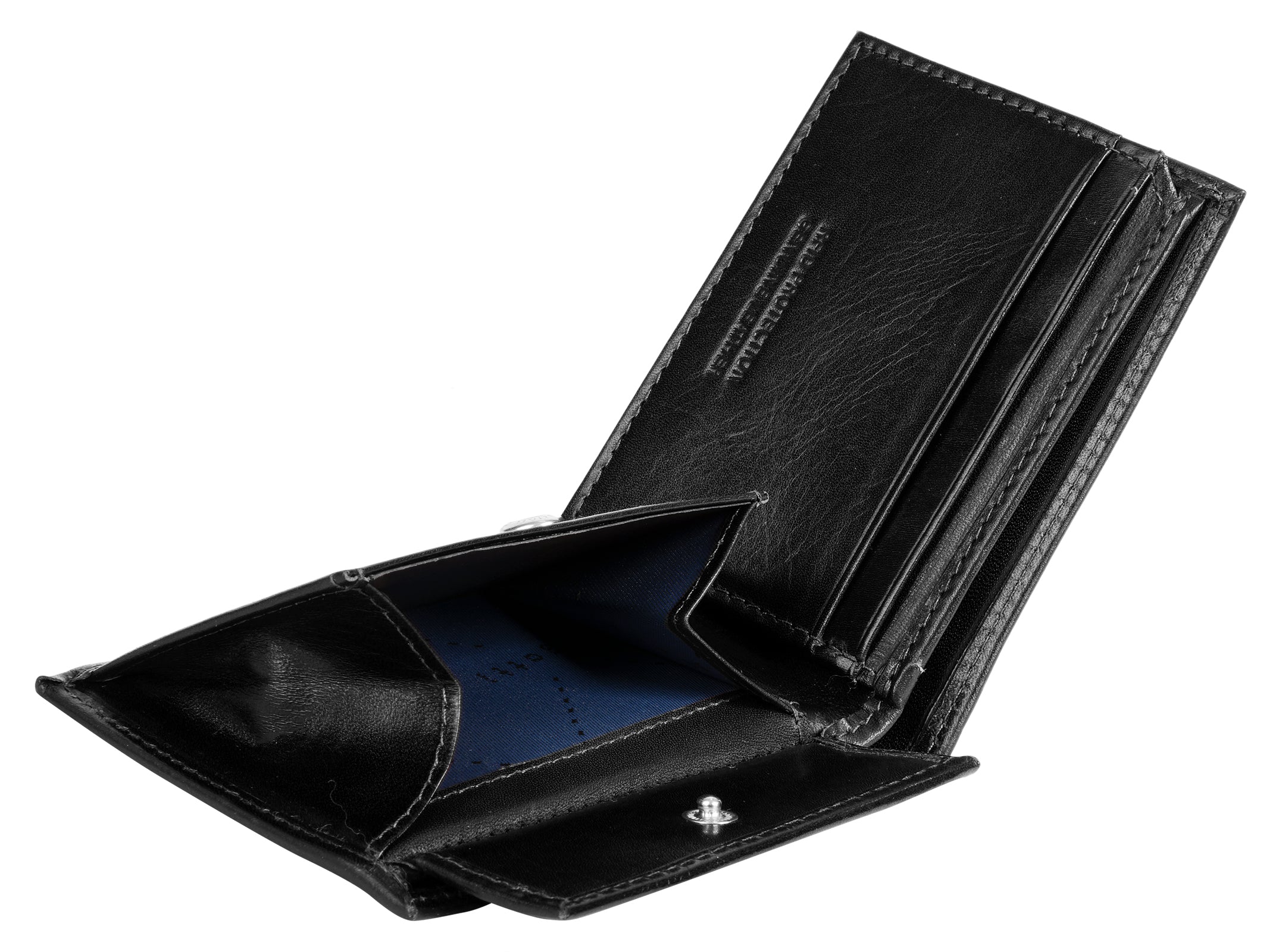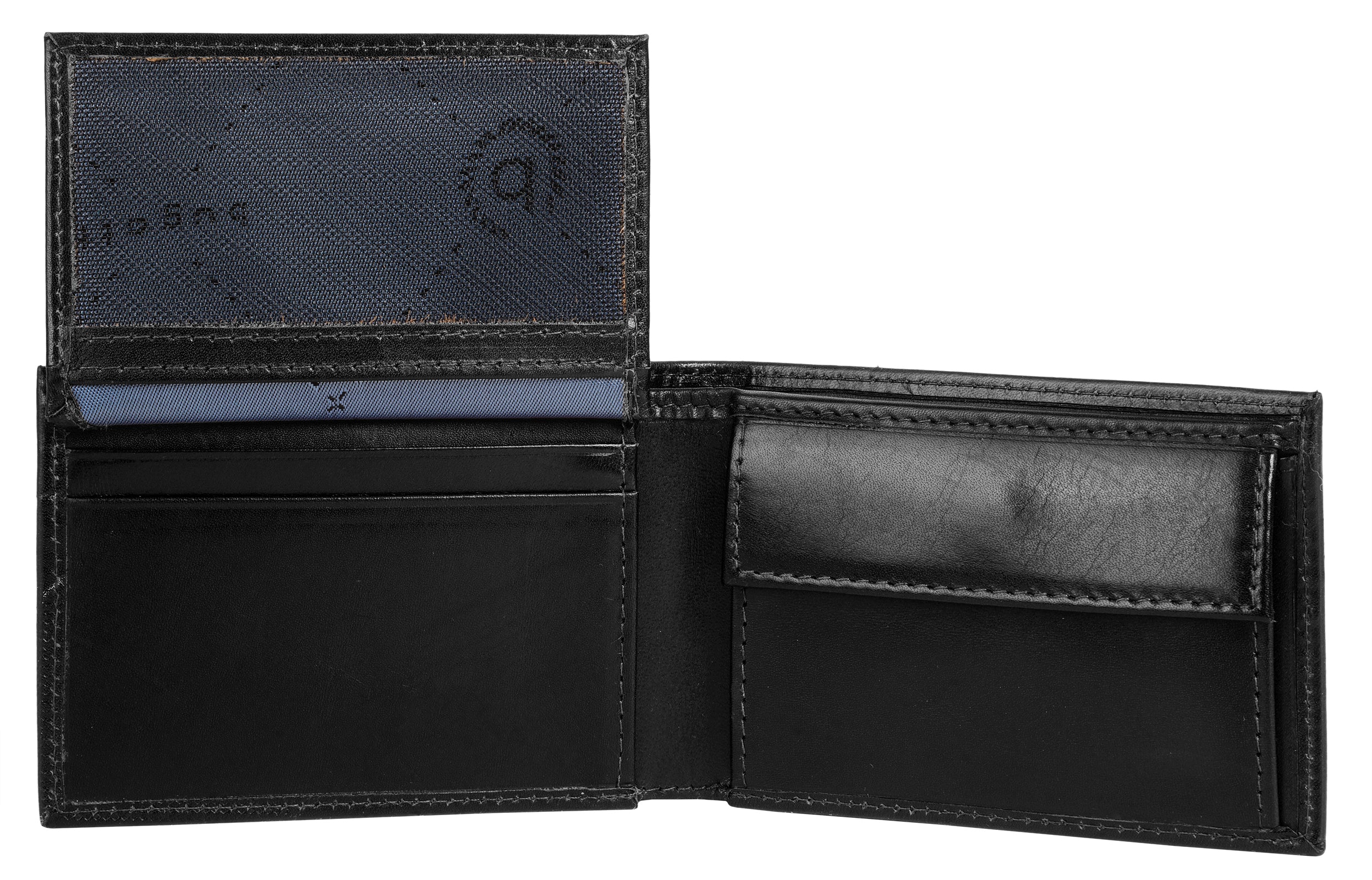 Auf das Beste reduziert: die Leder Geldbörse von bugatti! Mit ihrem handlichen Format passt sie sogar in jede noch so kleine Jacken- oder Hosentasche. Die Innenausstattung besteht aus der klassischen Auswahl von Karten- und Einsteckfächern, einem Sichtfach sowie jeweils einem Münz- und Geldscheinfach. Ein RFID-Schutz verhindert das unautorisierte Auslesen Ihrer privaten Kartendaten.