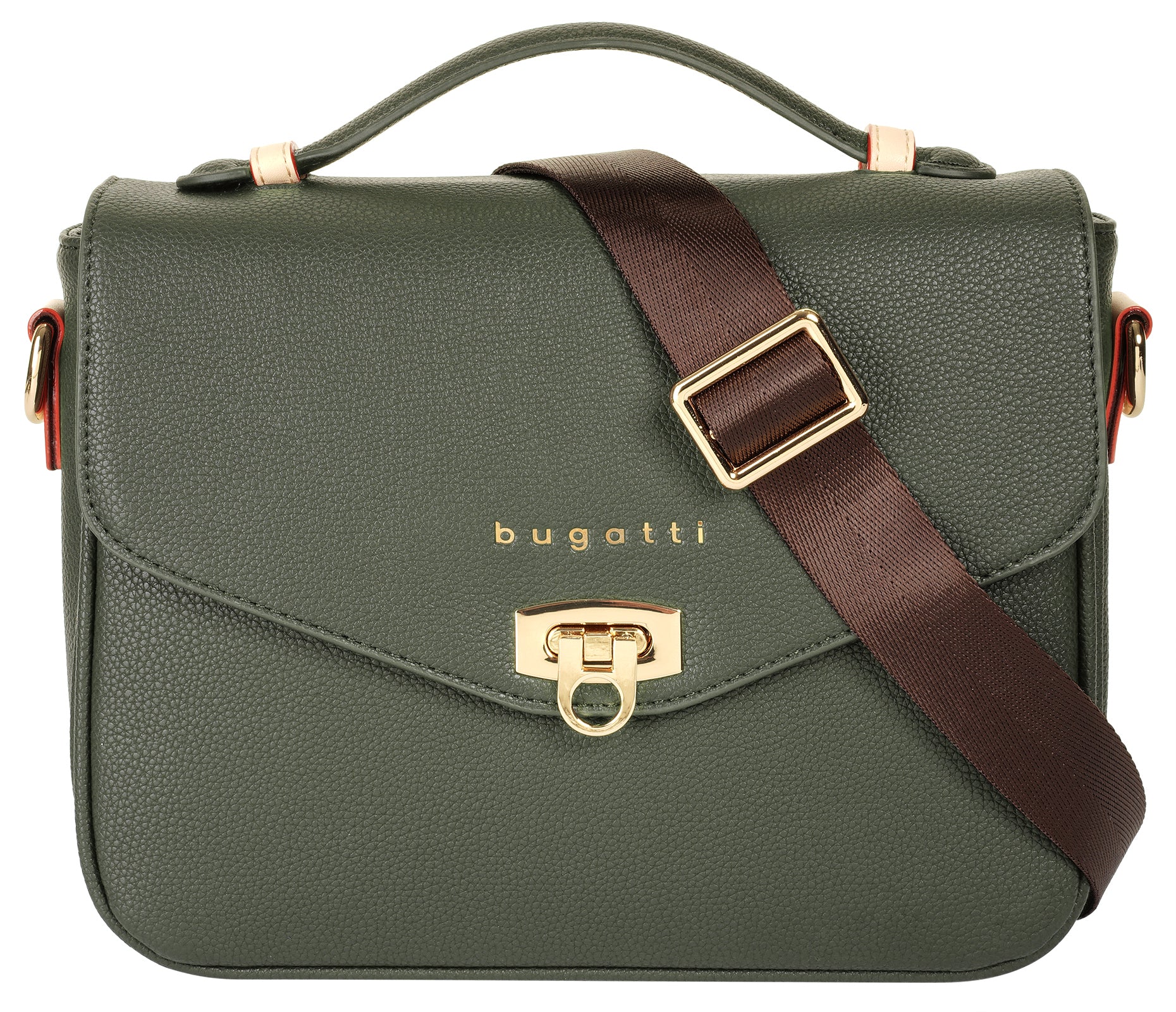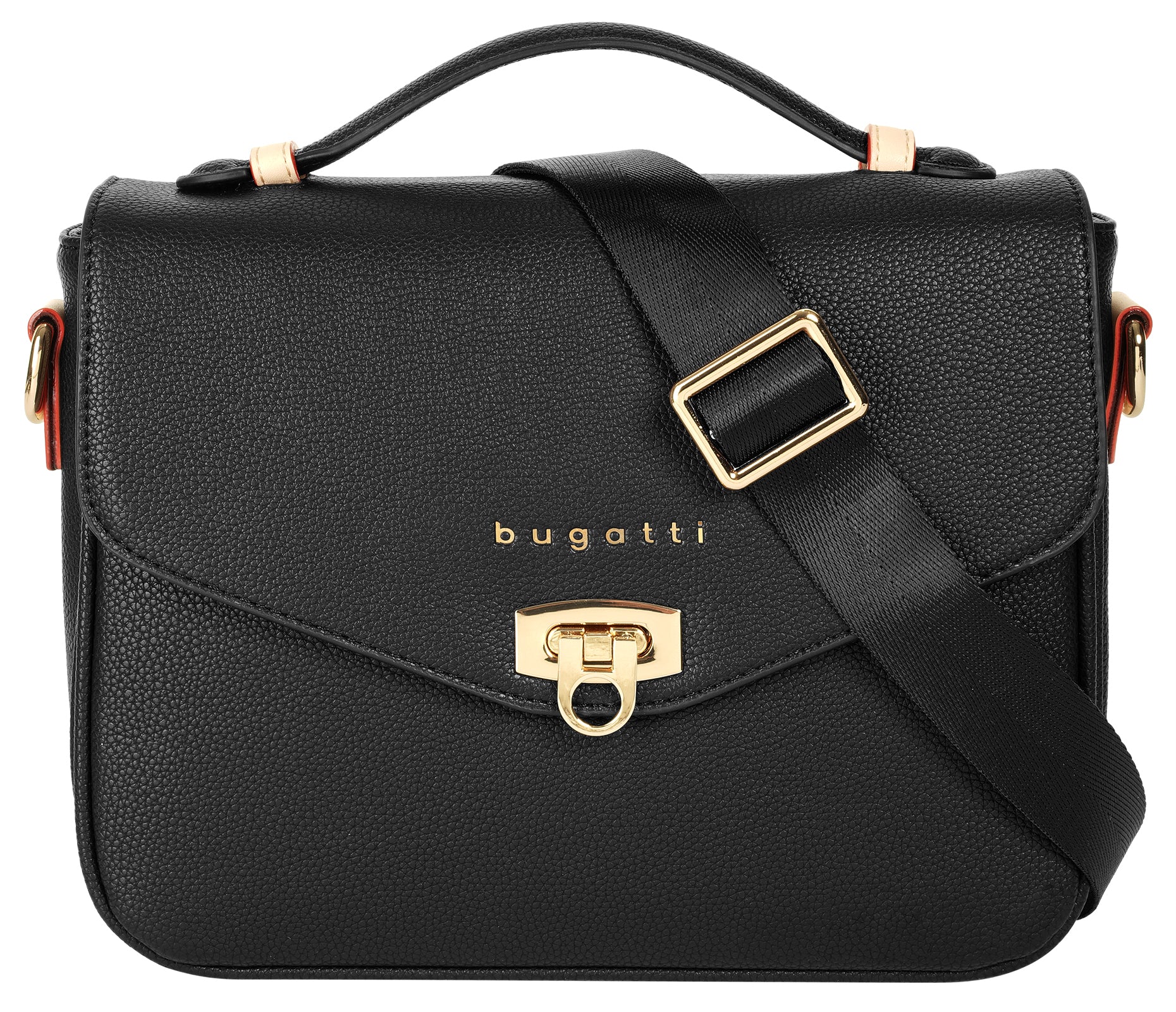 Bereits auf den ersten Blick werden Sie sich in diese Damen Umhängetasche aus dem Hause bugatti verlieben! Im verschließbaren Hauptfach ist gut geschützter & sicherer Platz für Portemonnaie, Smartphone und Schlüsselbund. Dank des Ziehharmonika-Designs passen ebenso eine kleine Wasserflasche oder Ihr Kosmetiktäschchen in die Handtasche! Nutzen Sie das Steckfach vorne für Kalender & Notizbuch. Besonders edel ist die Deckelklappe mit goldener Schließe & Logoprägung. Je nach Anlass können Sie zwischen 2 Tragevarianten wählen: schick als Handtasche oder bequem als Umhängetasche.