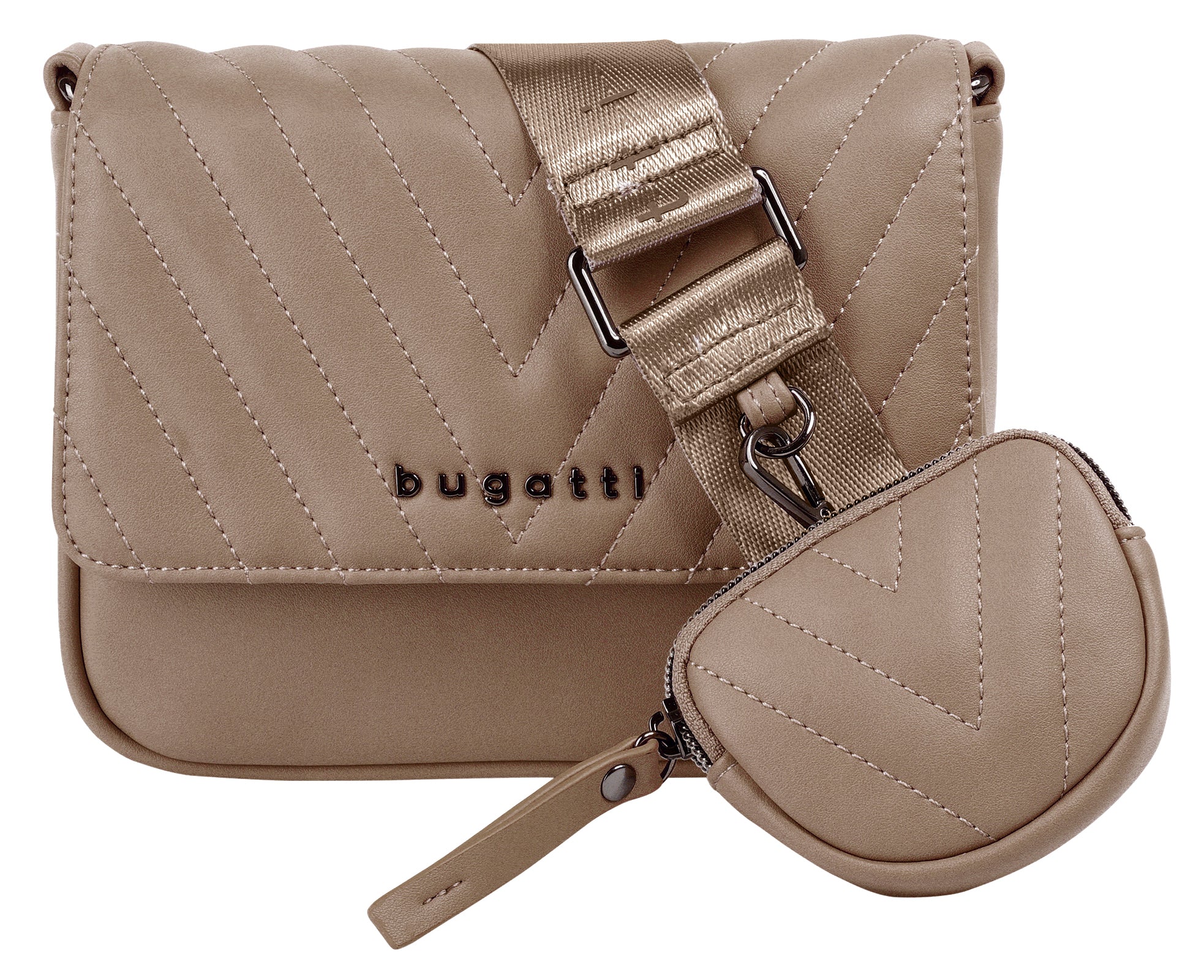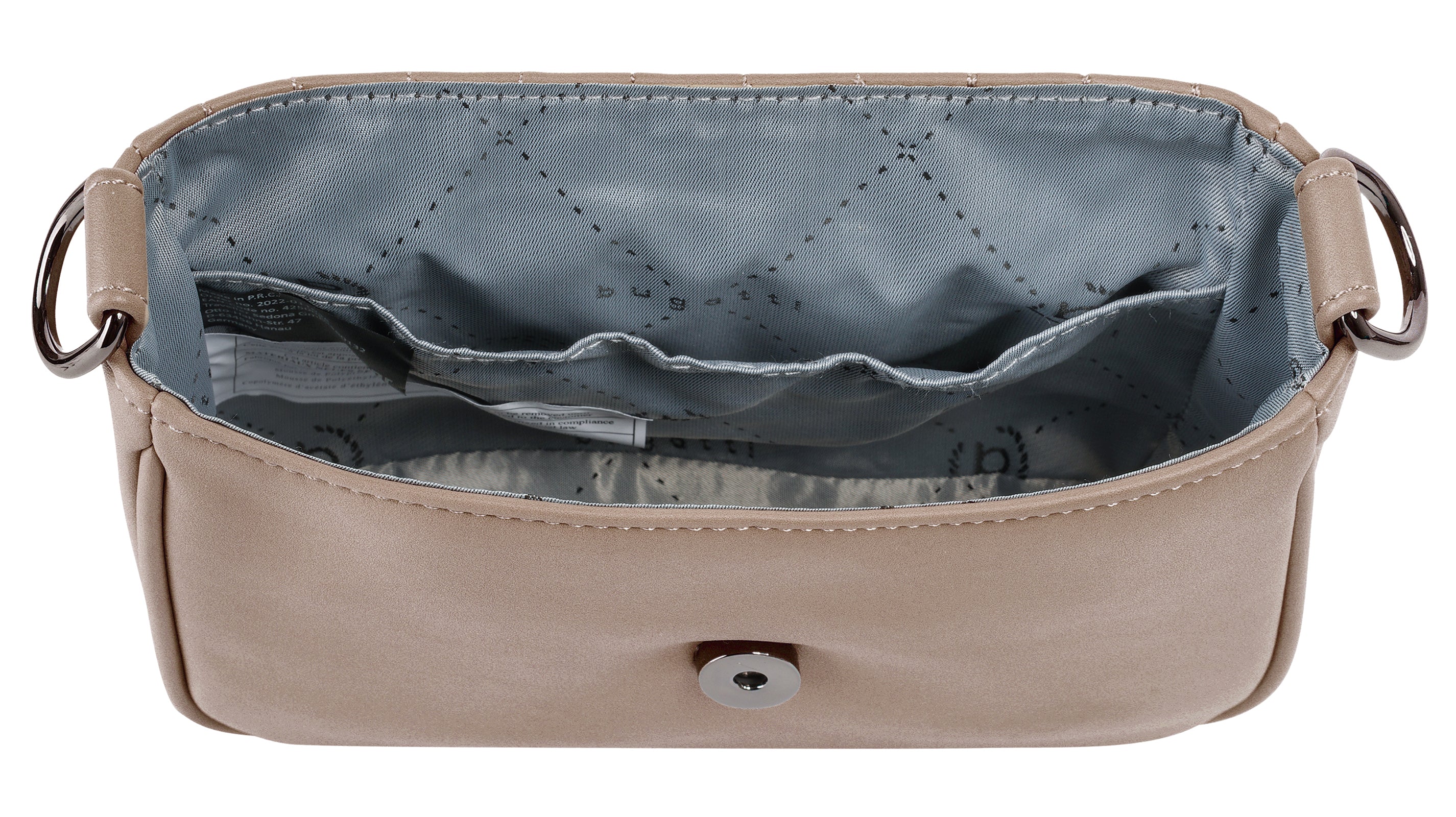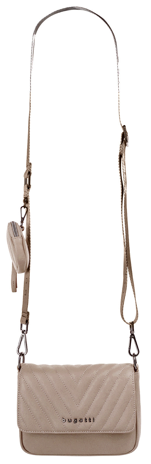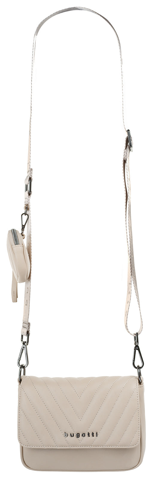 Bugatti präsentiert eine Umhängetasche mit viel Platz für Individualität. Sie können Sie Ihre Tasche nach Lust und Laune mit einem langen Schultergurt aus Stoff oder einem stylischen Henkel aus Kettenkliedern kombinieren. Ein separates Reißverschlusstäschchen ist ideal zur Aufbewahrung von Schlüssel, Kleingeld oder anderen Kleinigkeiten.