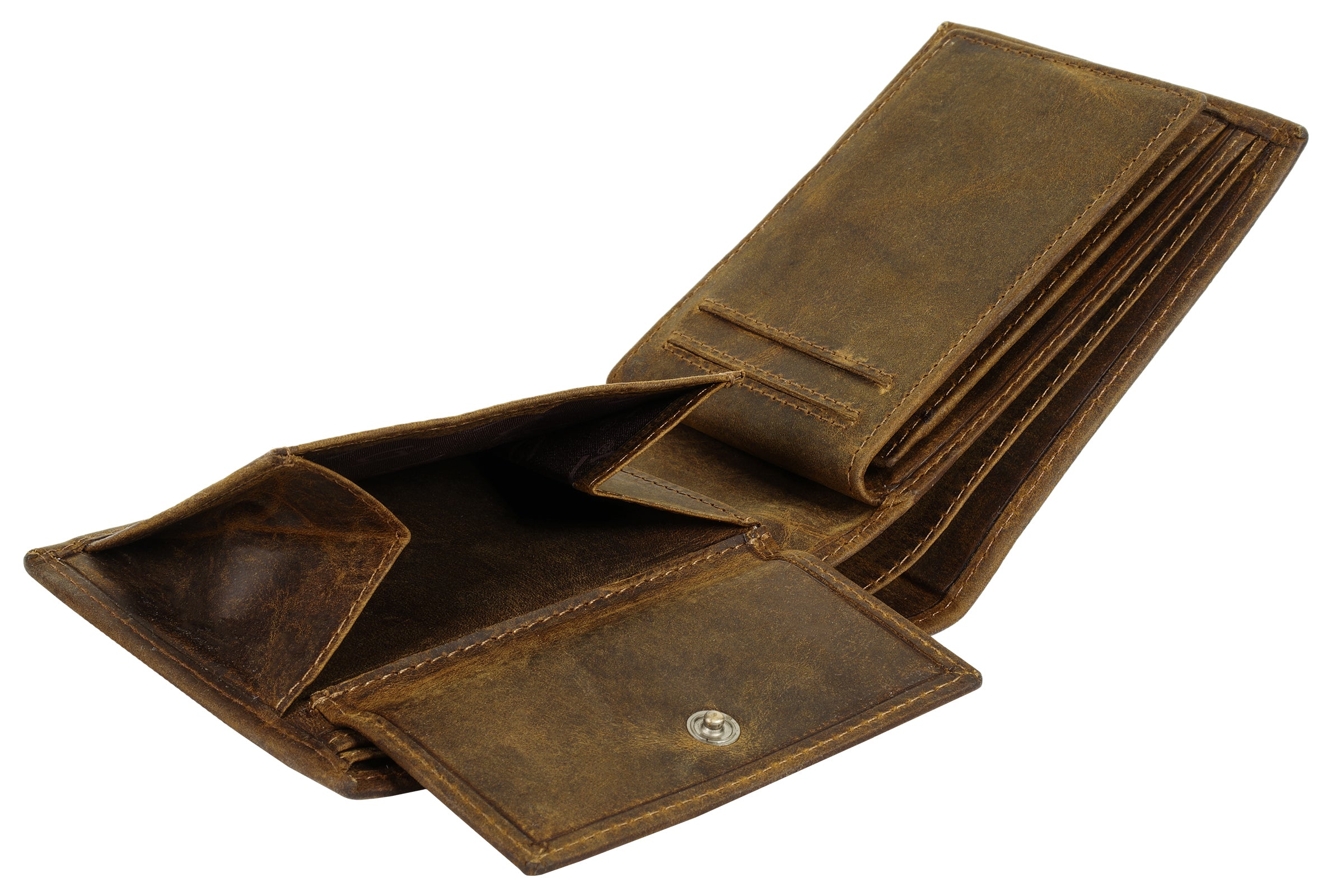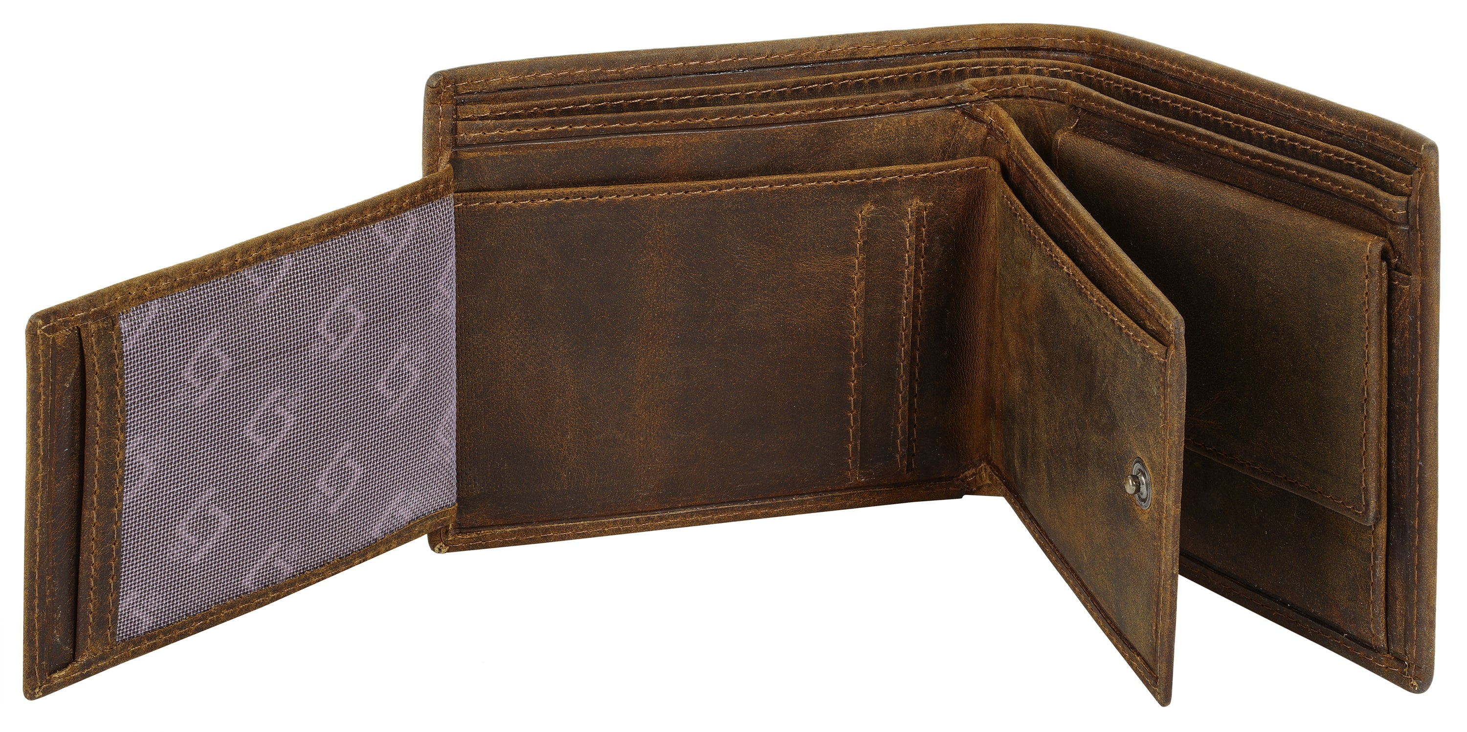 Landleder präsentiert eine klassische Leder Geldbörse im Vintage Look. Dank ihrer schmalen Form passt sie problemlos in Jacken- und Hosentaschen. Das dreifach klappbare Portemonnaie verfügt über eine raffinierte Fächeraufteilung, in der Bargeld, Bankkarten und mehr ihren Platz findet.