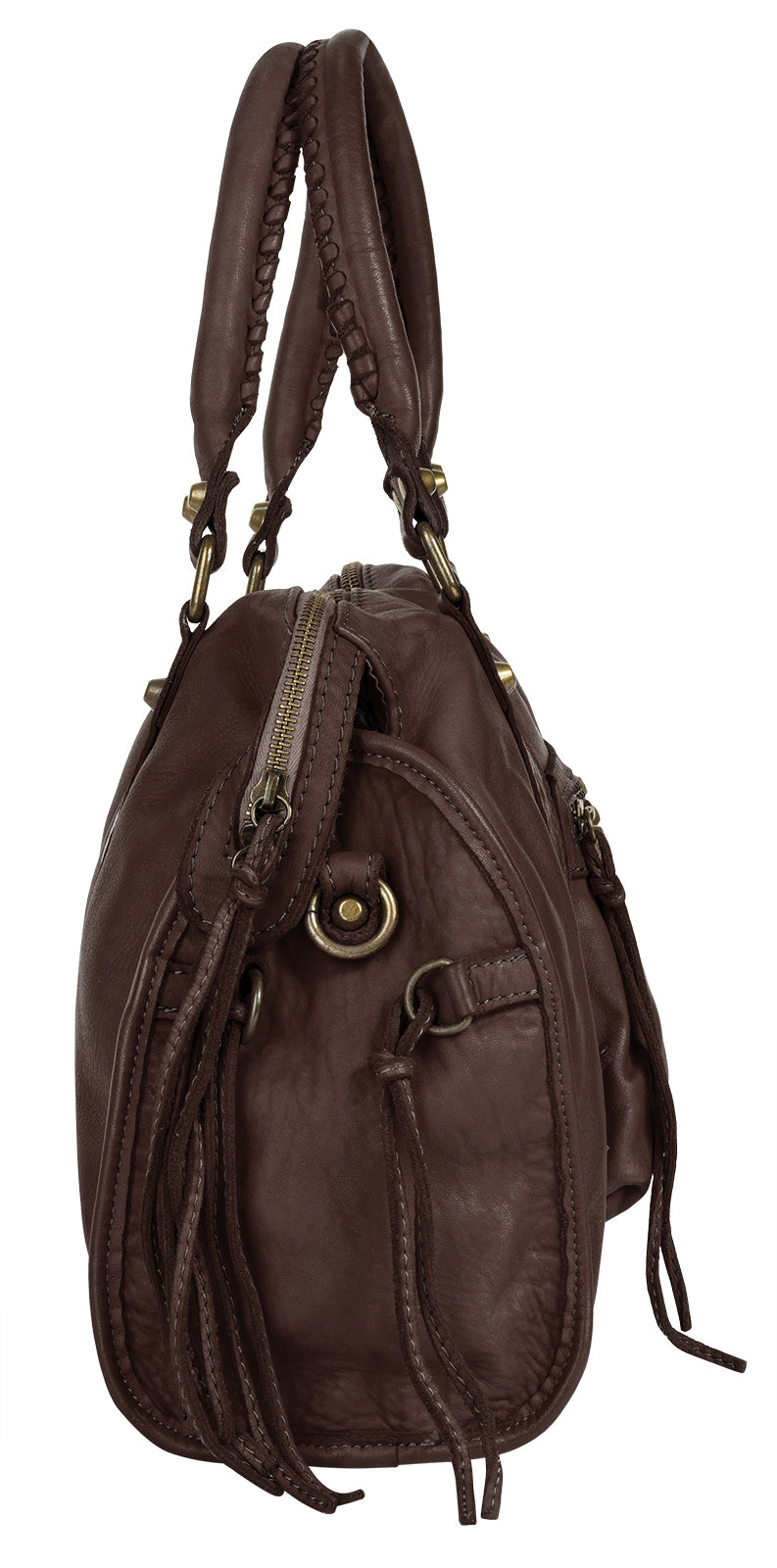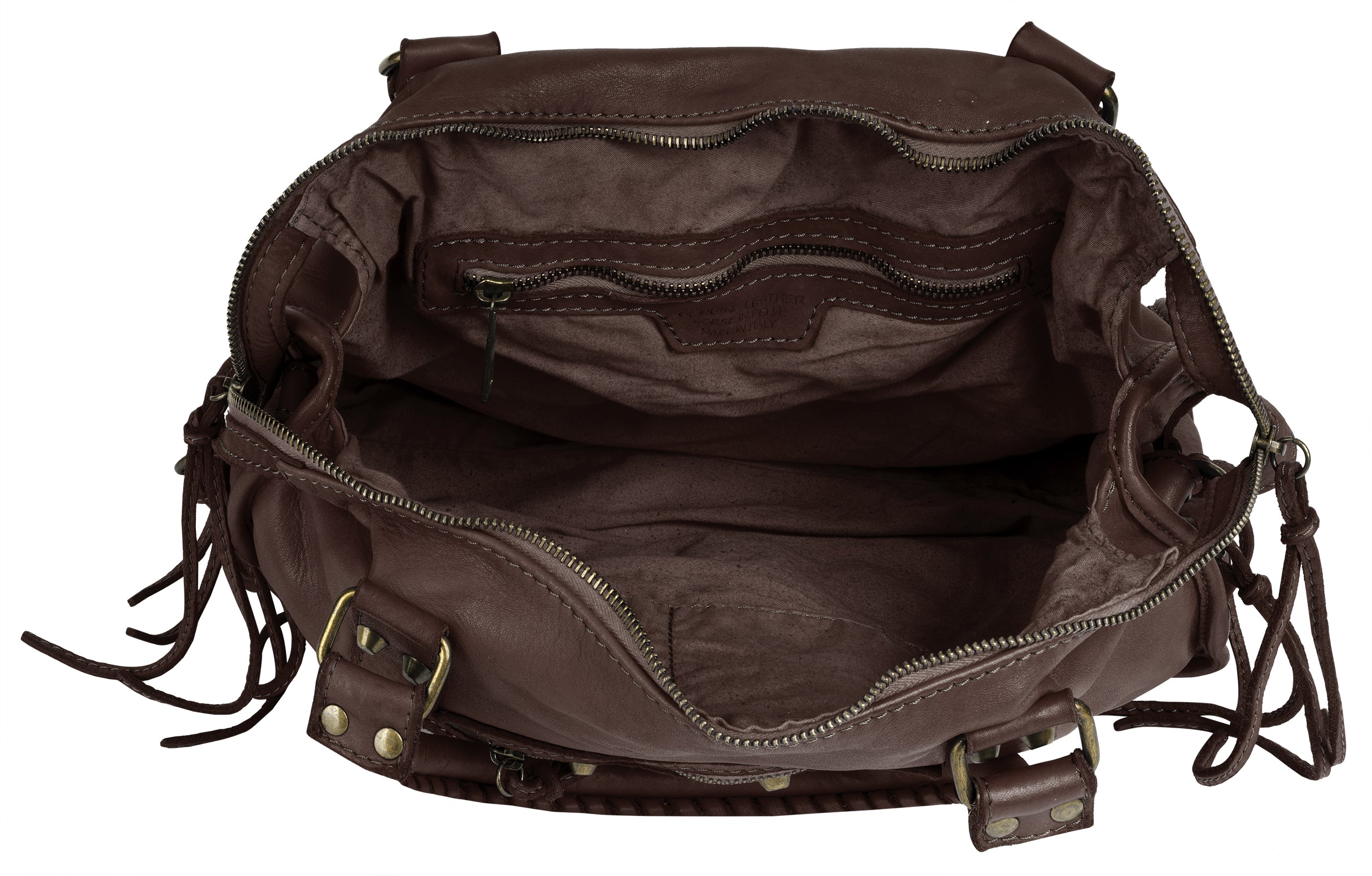 Ein Shopper mit Liebe zum Detail! Samantha Look präsentiert mit der Wärme der italienischen Sonne einen Damen Leder Shopper im Vintage Look. Die aufwendigen Details und Nieten sind ein Eyecatcher und geben jedem Ihrer Outfits einen rebellischen Touch. Das große Hauptfach ist geeignet für A4 und bietet viel Platz für Smartphone, Buch und Wasserflasche. Perfekt für einen gemütlichen Stadtbummel, ein Rendezvous oder die nächste Shoppingtour. Bodennägel sorgen für mehr Stabilität und schützen Ihren Shopper vor Abnutzung. Dank des abnehmbaren Schultergurts können Sie zwischen 2 Tragevarianten wählen: entweder klassisch als Handtasche oder bequem als Umhängetasche.
